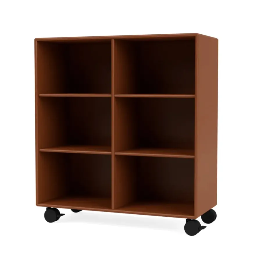 Reolen kan bestilles i alle Montanas 40 lakfarver med enten ophæng, sokkel, ben eller hjul.