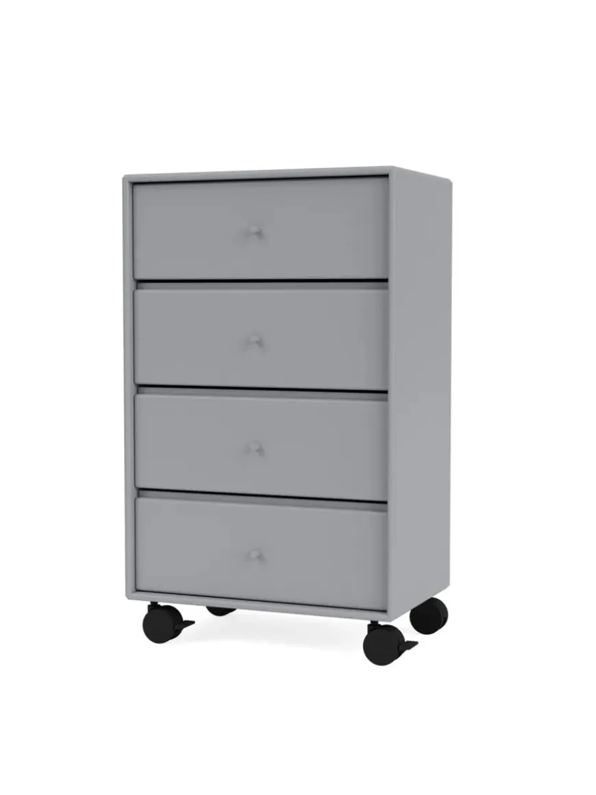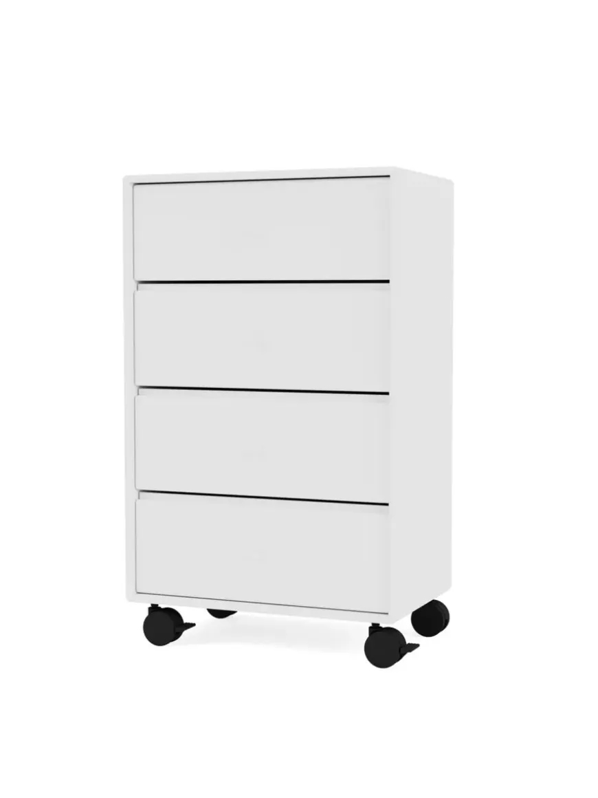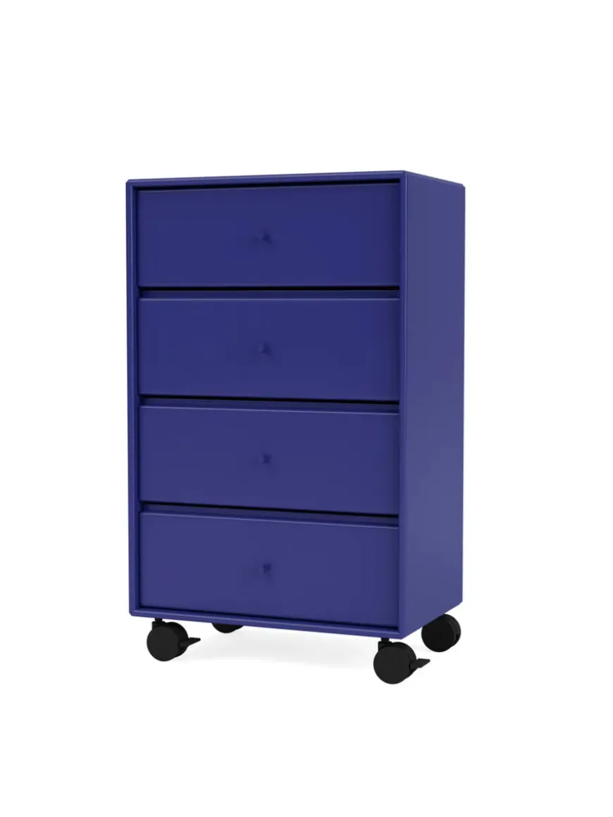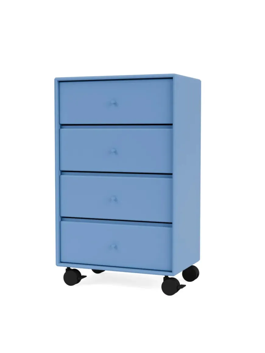 Montana modul med skuffer, model 1143 kan vælges i alle Montanas 40 lakfarver. Reolen har 4 skuffer og er designet af Peter J. Lassen. Inkl. aluminiumsgreb – Lakerede greb tilbydes mod et tillæg. Mål: Højde: 69,6 cm (ekskl. sokkel el. ben) Bredde: 46,8 cm Dybde: 30 eller 38 cm.