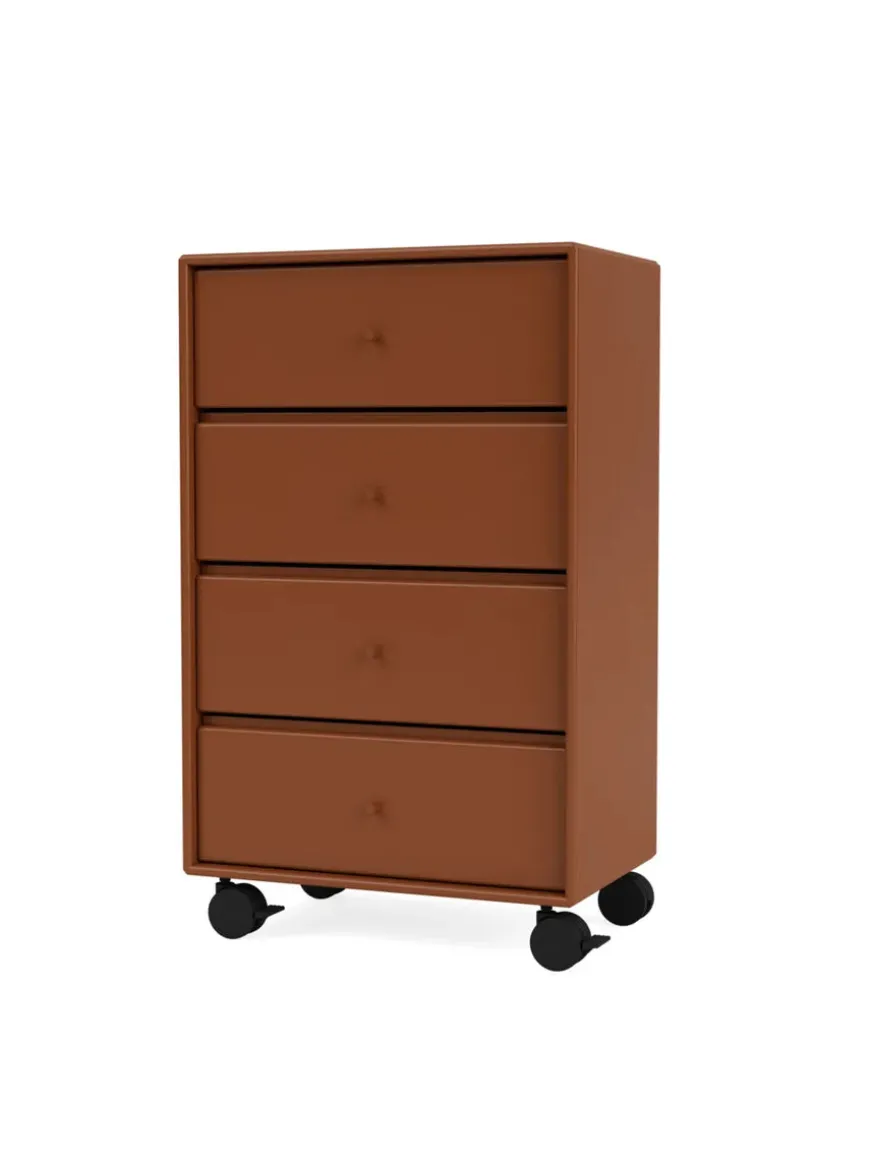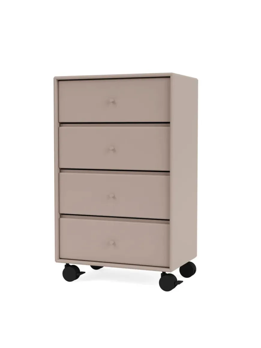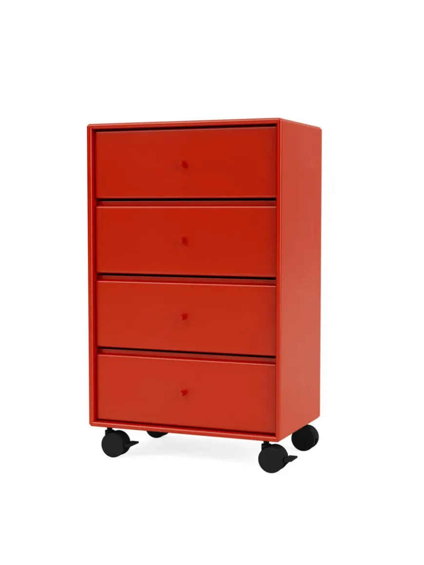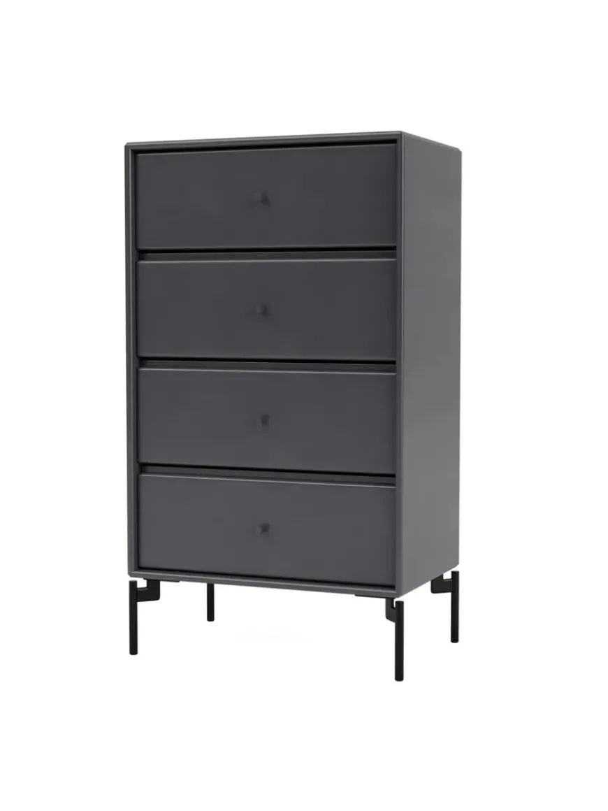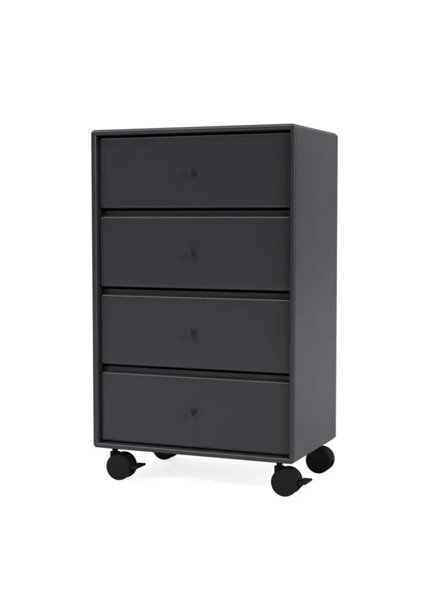 Montana modul med skuffer, model 1143 kan vælges i alle Montanas 40 lakfarver. Reolen har 4 skuffer og er designet af Peter J. Lassen. Inkl. aluminiumsgreb – Lakerede greb tilbydes mod et tillæg. Mål: Højde: 69,6 cm (ekskl. sokkel el. ben) Bredde: 46,8 cm Dybde: 30 eller 38 cm.