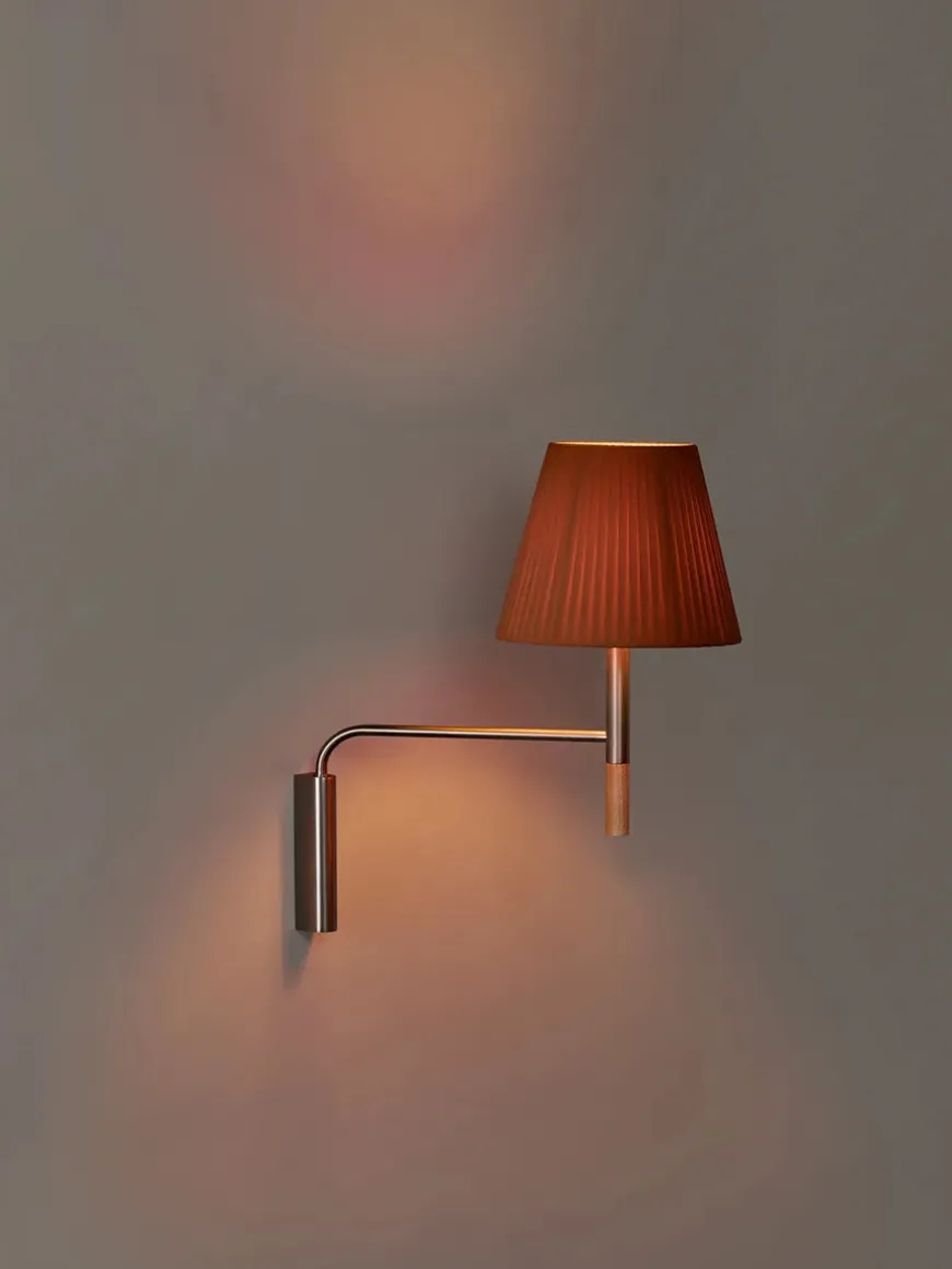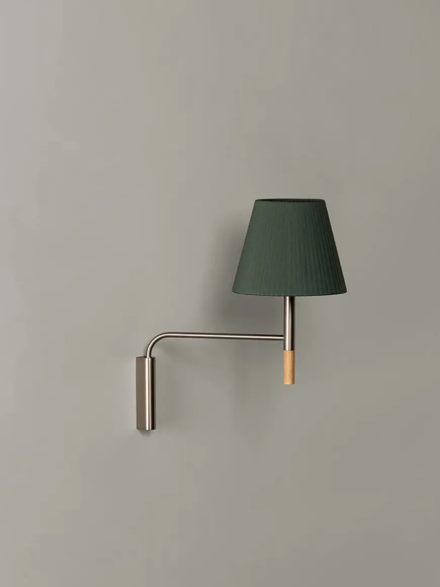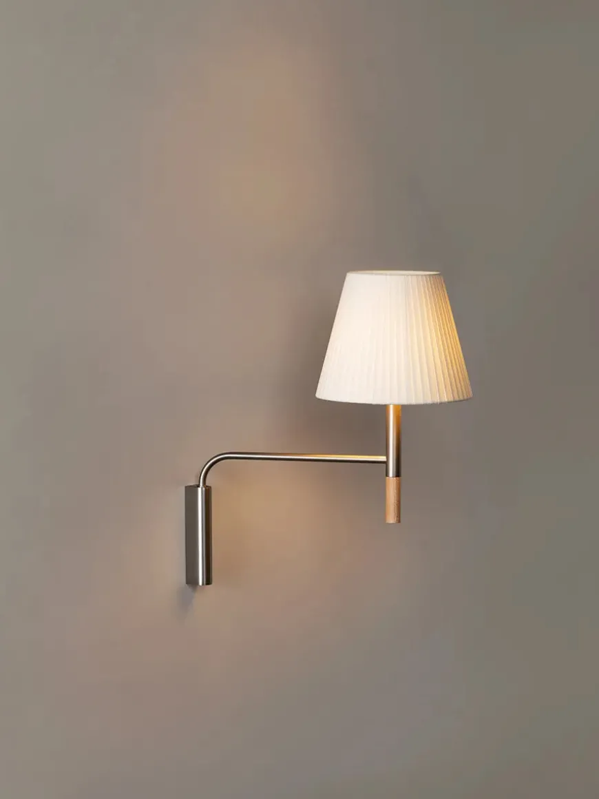 BC væglampen er en klassisk lampe, der har en robust konstruktion og funktionel kvalitet. Væglamperne kan tilpasses behovene i ethvert rum, da lampeskærmene fås i tre stilarter. BC3 har desuden en drejelig arm, hvilket gør den ideel at bruge som sengelampe eller i stuen. Væglampen fås med 7 forskellige lampeskærme, men har alle en detalje af bøgetræ.