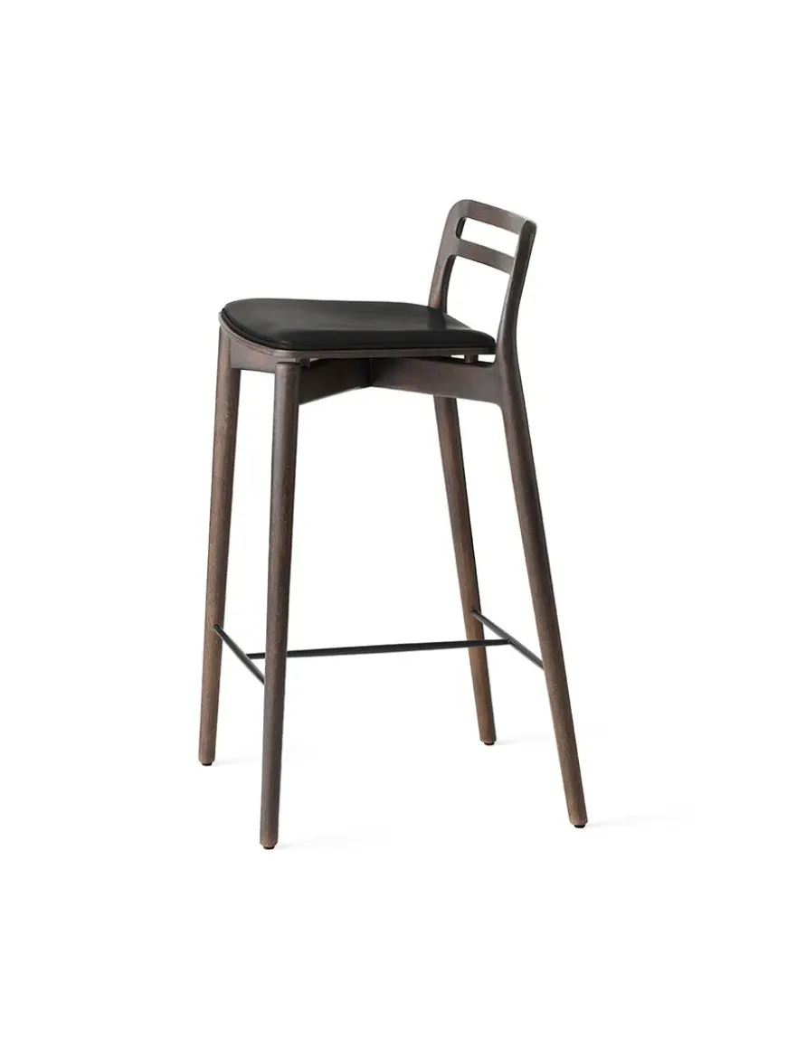 Vipp484 Cabin counterstol er perfekt til køkkenøen. En meget smuk og elegant barstol i solide materialer. Den slanke fodstøtte af stål giver stolen ekstra stabilitet.