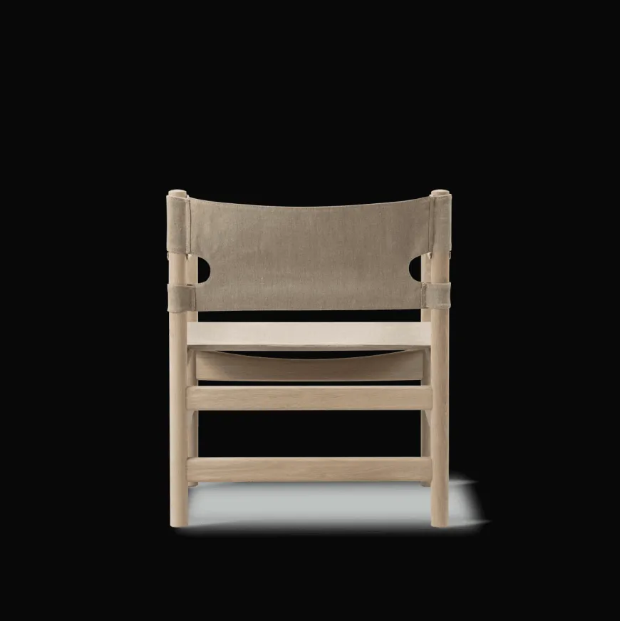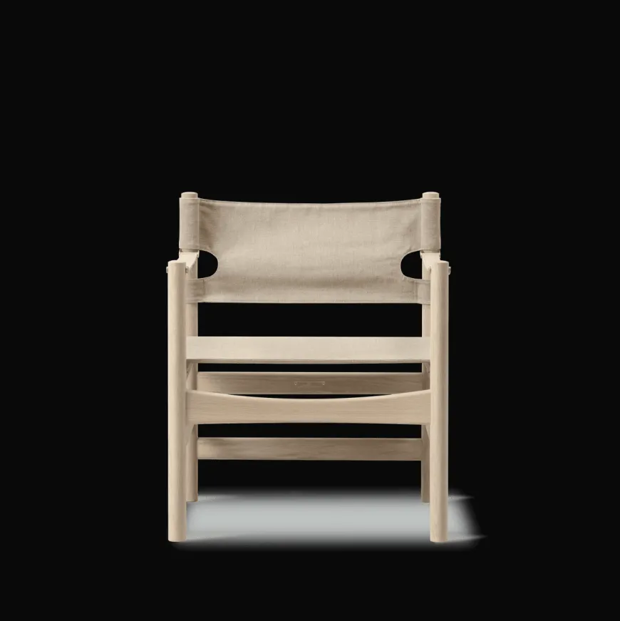 Canvas 21 forener klassisk elegance med afslappet ro. Tegnet af Børge Mogensen i 1968 og opbygget som en enkel, ærlig konstruktion, der tydeligt afspejler Mogensens præcise proportioner. Stolen er i FSC-certificeret massiv eg, sæbebehandlet for et lyst og naturligt udtryk, kombineret med naturfarvet canvas i sæde og ryg samt beslag i massiv messing – materialer, der udvikler en sofistikeret patina over tid. En alsidig loungeklassiker, hvis rene linjer harmonerer med ethvert rum.