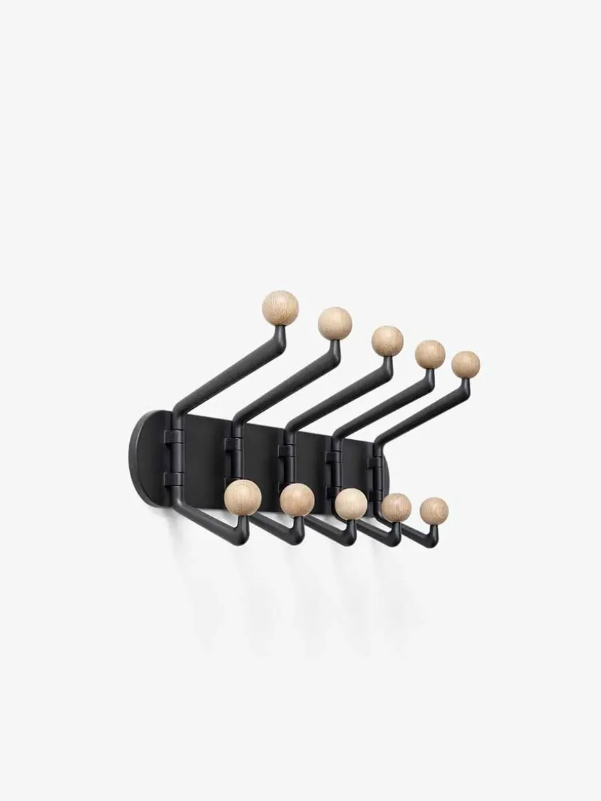 Capture er designet til at blive brugt alene eller i et sæt. Den funktionelle knage giver en række løsninger rundt omkring i hjemmet. Denne knage har fem justerbare kroge og kan bruges på badeværelset eller køkkenet som et praktisk sted at hænge håndklæder op eller i entréen til frakker og tasker.