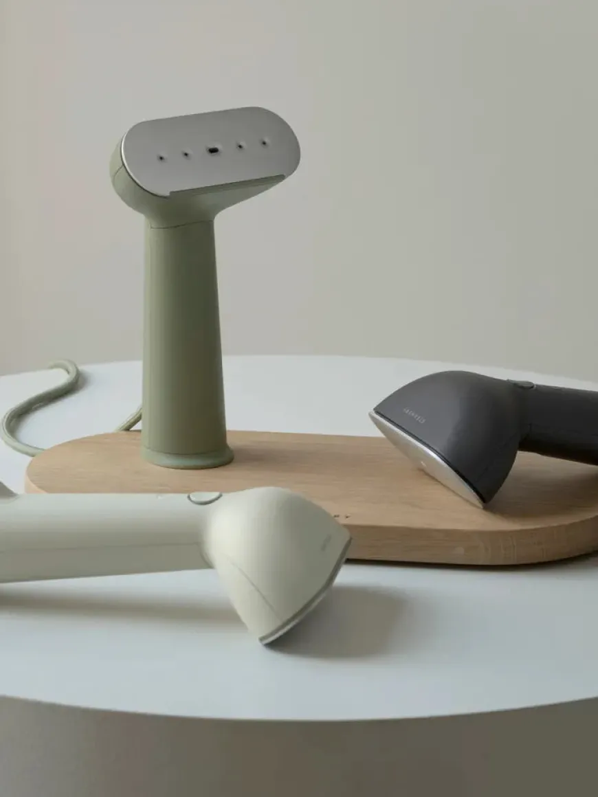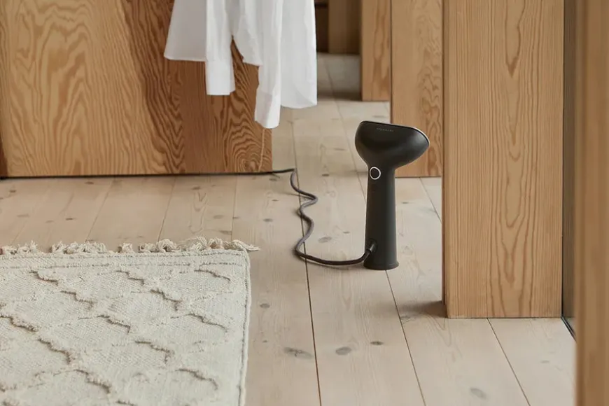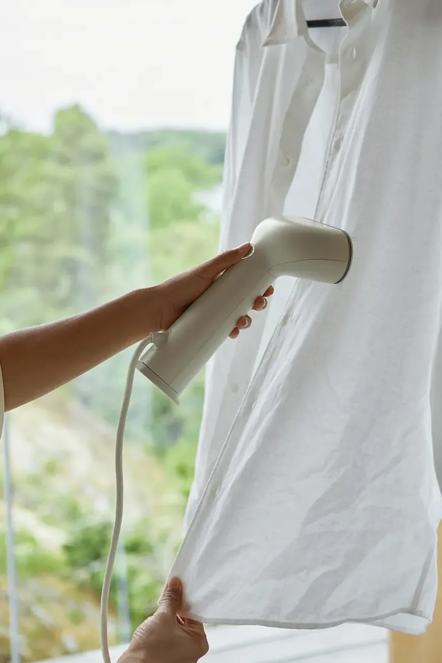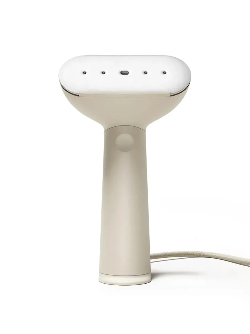 Cirrus No.3 Iron Steamer, sand fra Steamery. Håndsteameren er et effektivt alternativ til at både stryge og vaske dit tøj. Dit tøj bliver krølfrit og præsentabelt på få minutter. Dampen fra steameren reducerer ligeledes dårlige lugte og fjerner overfladisk snavs og bakterier. Fungerer på alle materialer, undtagen læder og ruskind. Vær forsigtig med Silke.