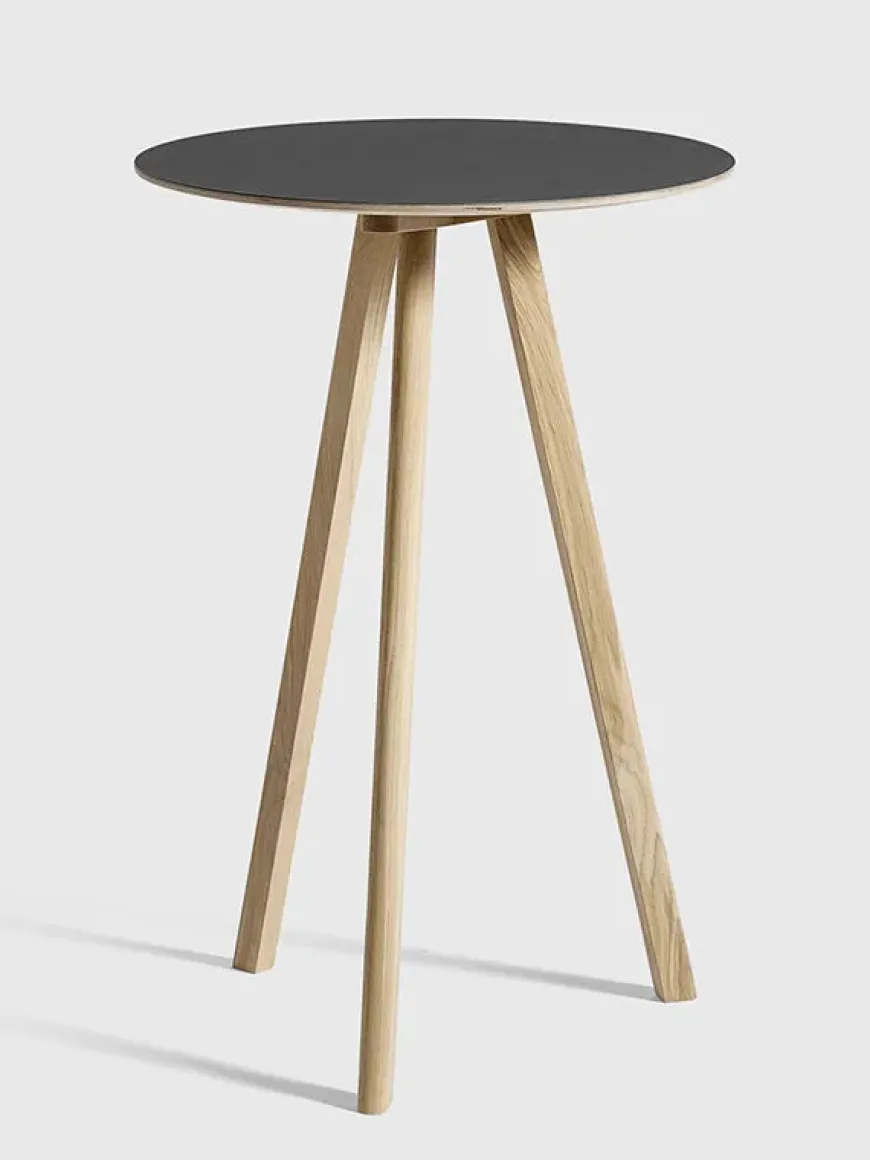 Copenhague CPH20 bord Ø70 fra Hay Designet af: Ronan & Erwan Bouroullec Mål: Ø: 70 x H: 105cm Materiale: Lakeret eg (vandbaseret lak) Sortbejdset eg (vandbaseret lak) Bordplade: 18mm krydsfiner med egefiner, laminat eller linoleum.