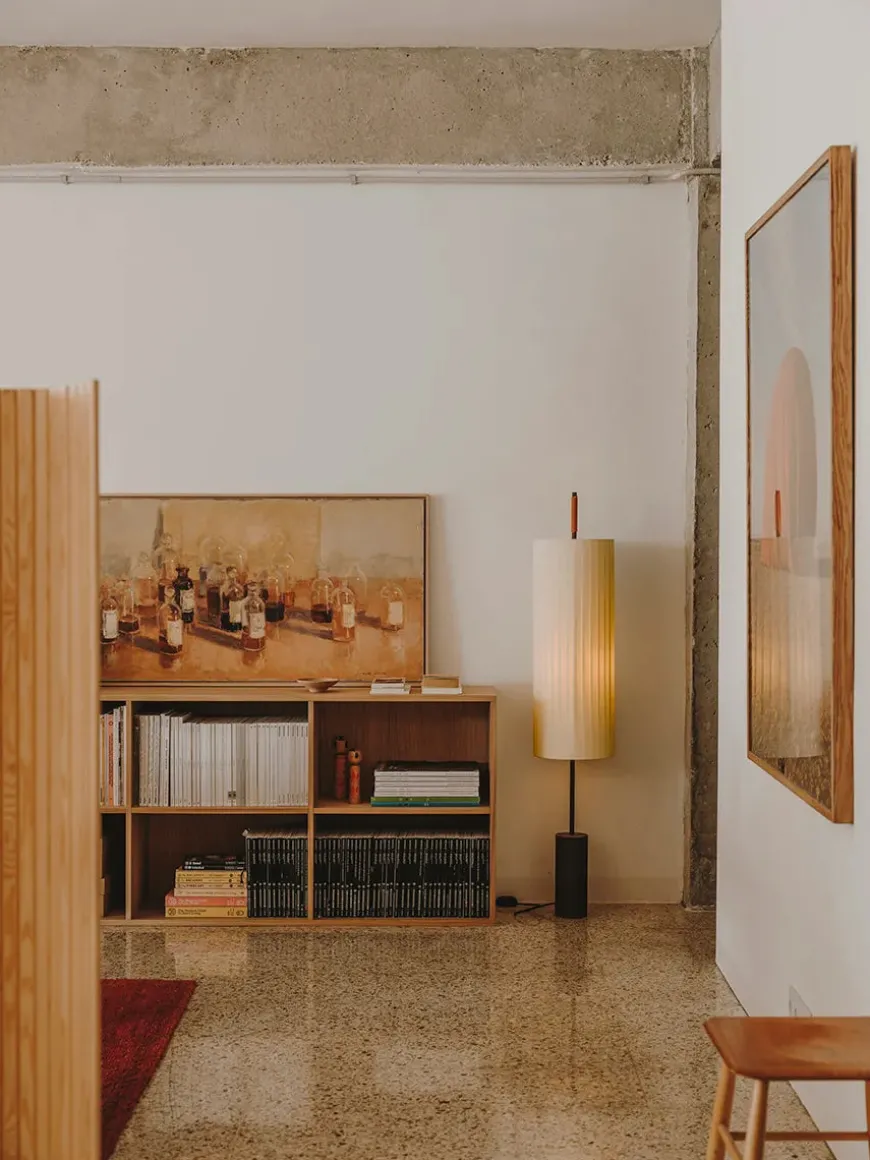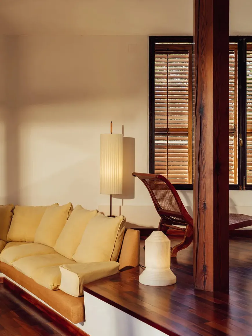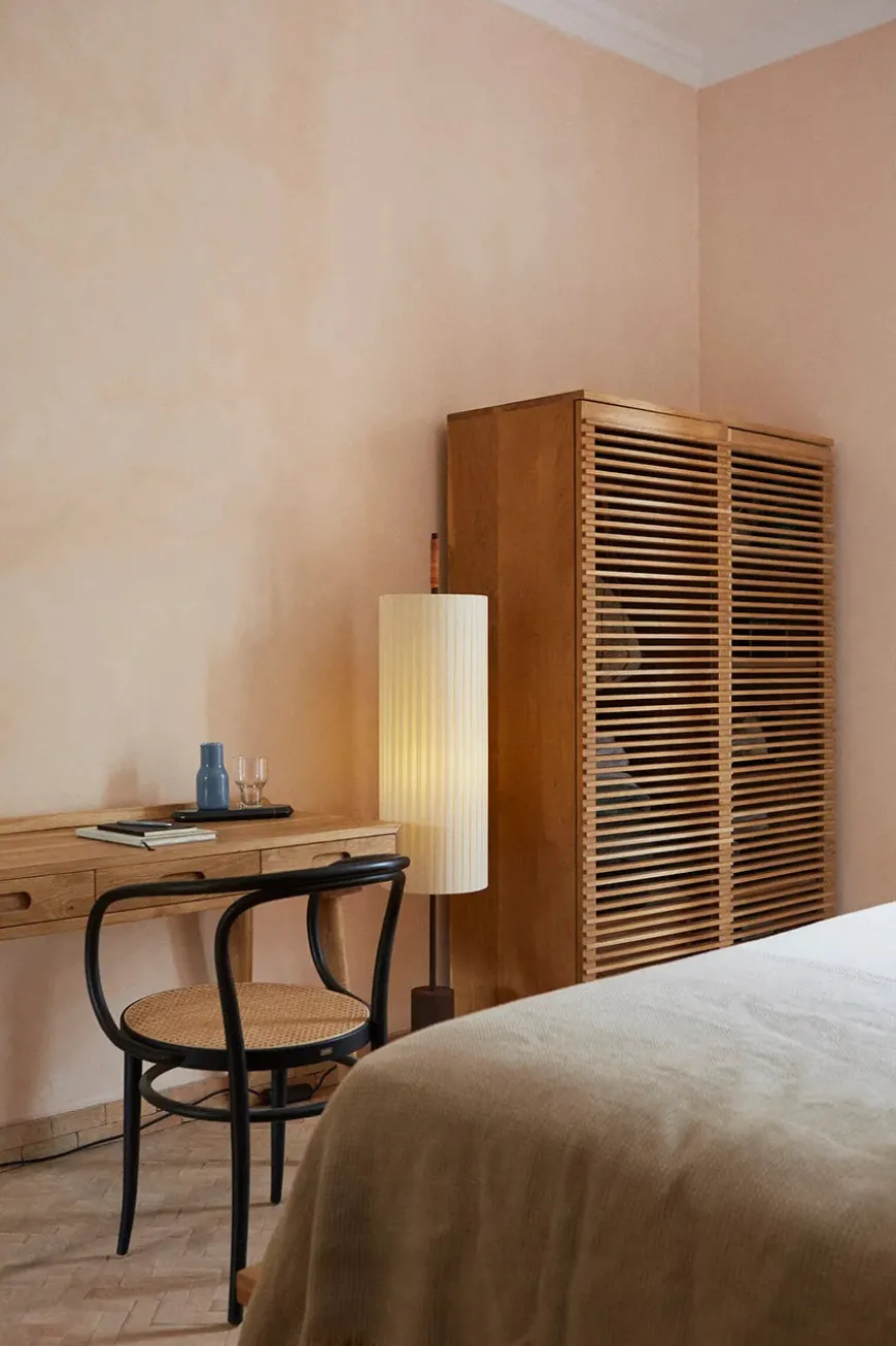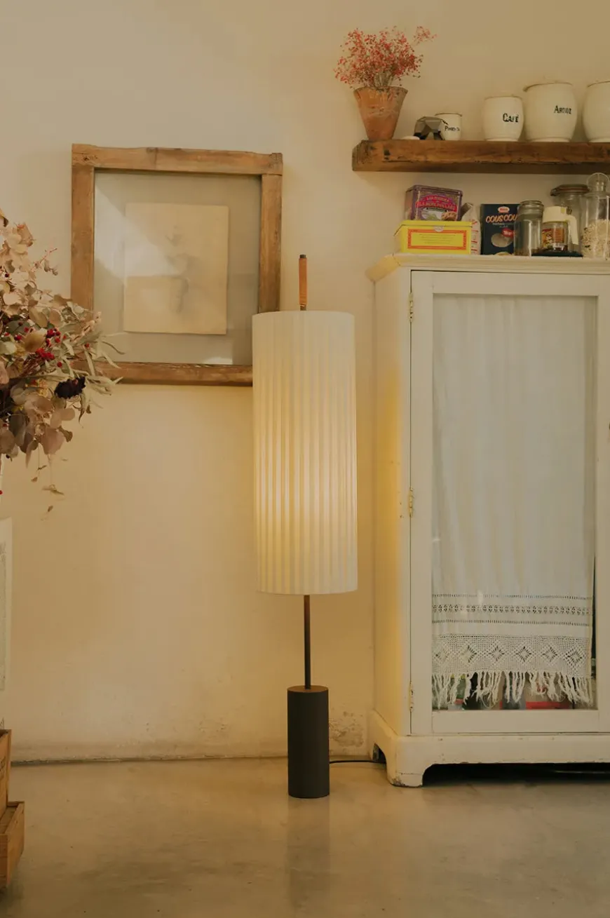 Dórica gulvlampen er en minimalistisk lampe, der passer ind i alle hjem. Lampen har en robust mørkebrun cylinder base med en flot bomuldsskærm samt et lædergreb – altså den perfekte balance mellem de tunge og lette materialer. Dórica er en strålende skulptur, som uden tvivl vil pynte i hjemmet! Lampeskærmen sørger for et blødt lys, så den både kan bruges i stuen og soveværelset.