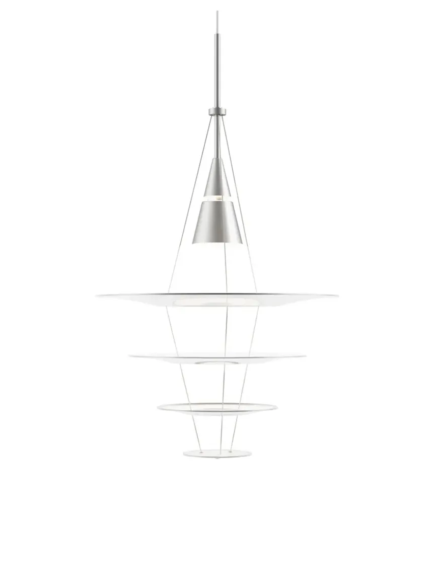 Materiale: Skærme i matlakeret akryl, kegle i børstet og lakeret aluminium.