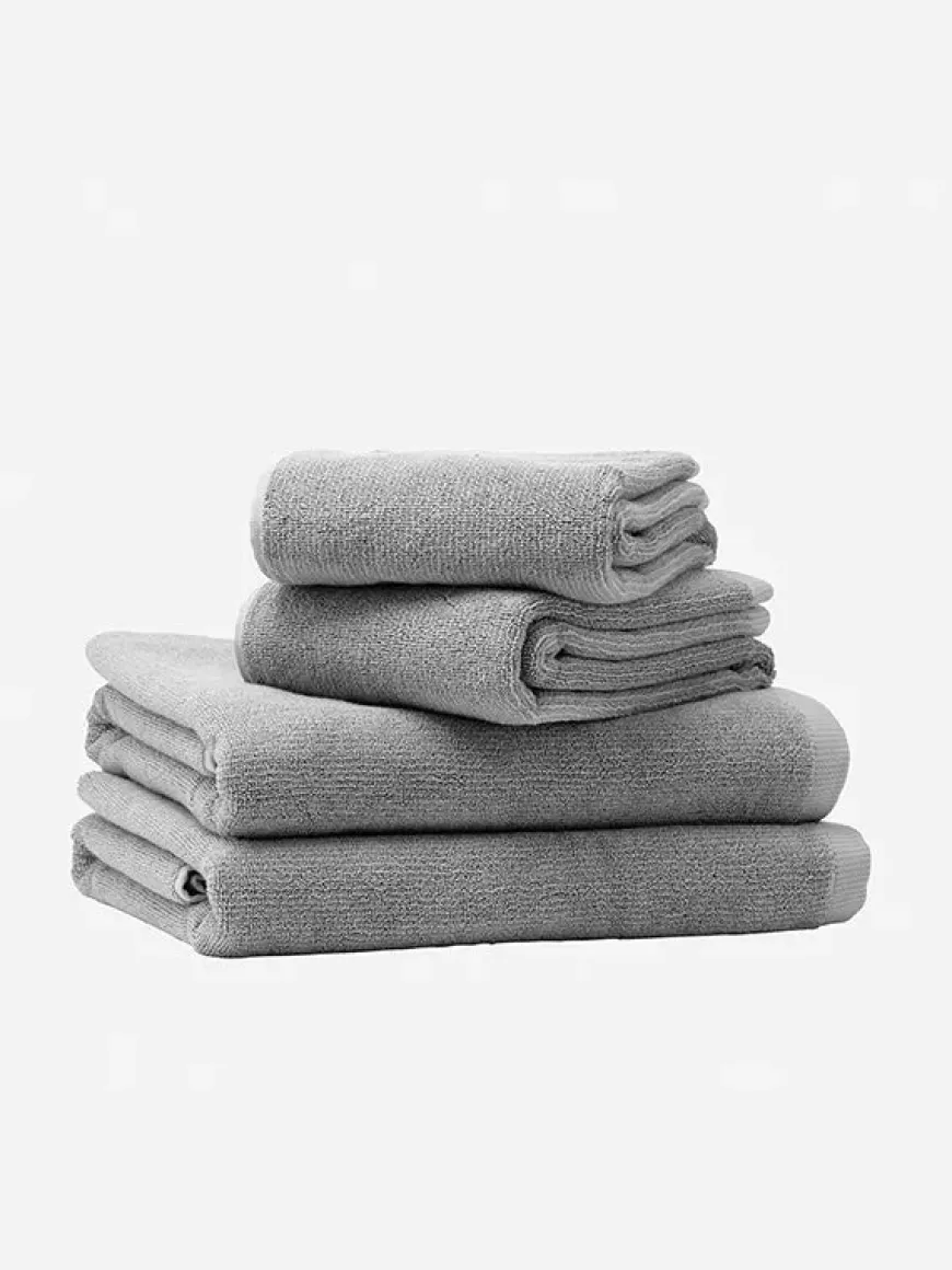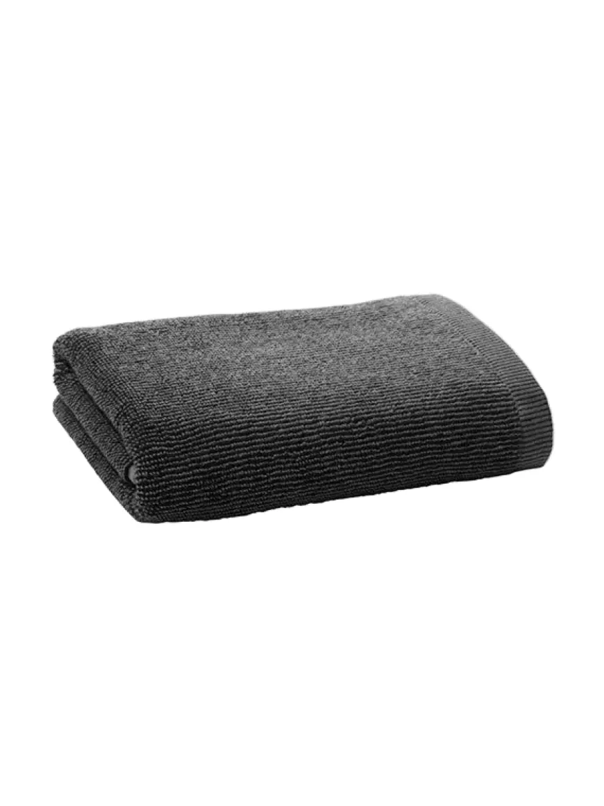 Håndklæderne er udstyret med en solid gummistrop og fås i tre versioner – gæstehåndklæde, håndklæde og badehåndklæde.