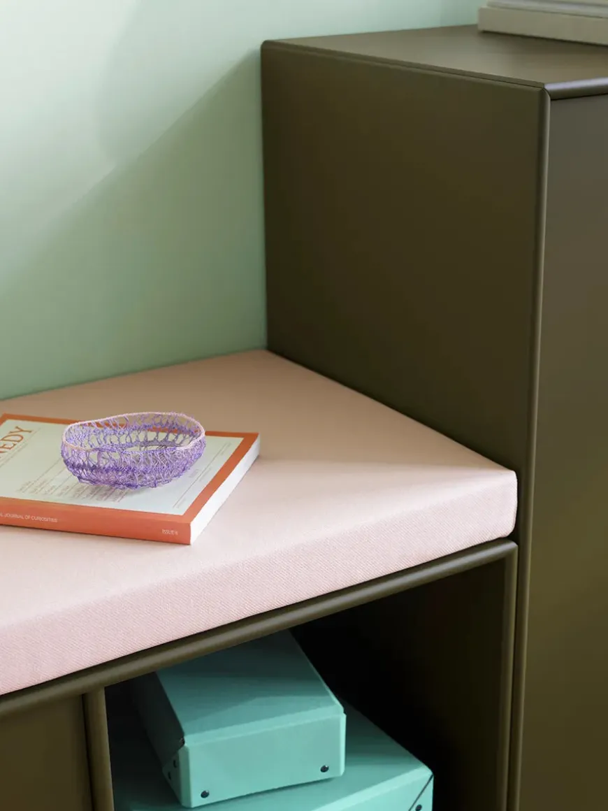 Sædehynde der passer perfekt til Montanas Rest moduler. Hynden her er i det lækre tekstil, Reflect, fra danske Kvadrat. Det slidstærke tekstil er praktisk og let at vedligeholde. Brug hynden på Rest II i entréen til når der skal tages overtøj eller sko på.