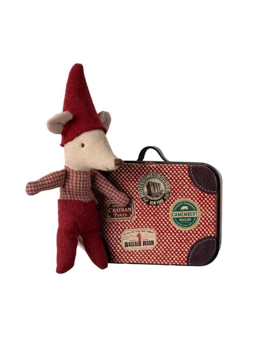Sød julenus, der har medfølgende kuffert. Julemusen sover nemlig i kufferten med sit tæppe. Den lille baby julemus er både dekorativ og sjov for de små.