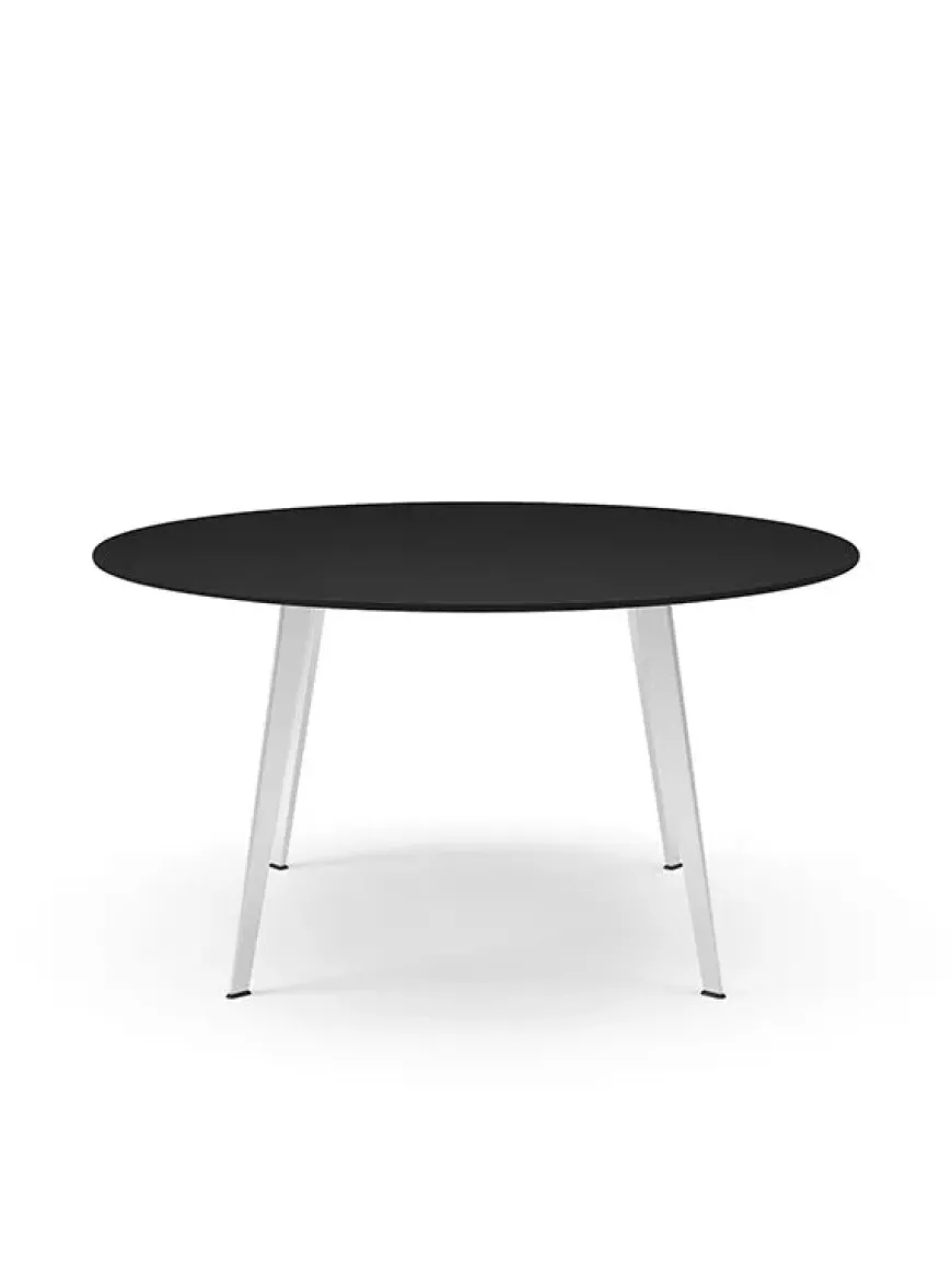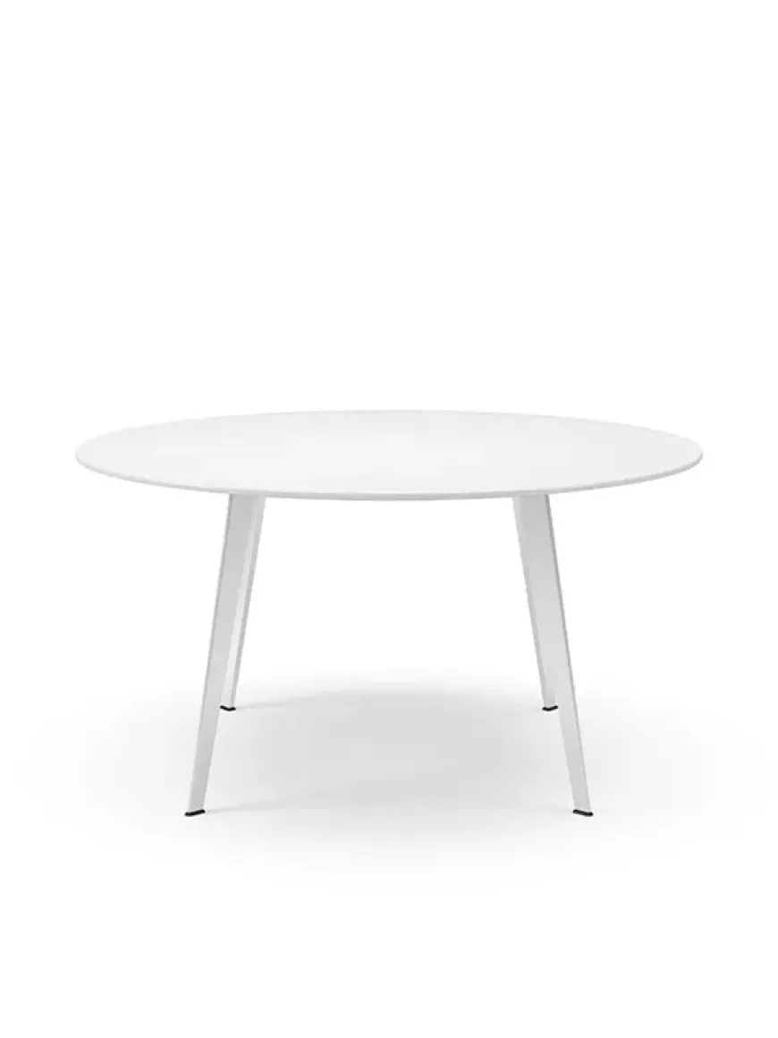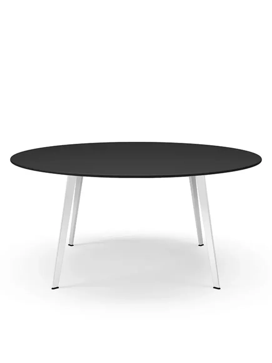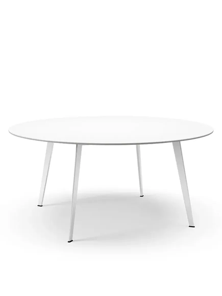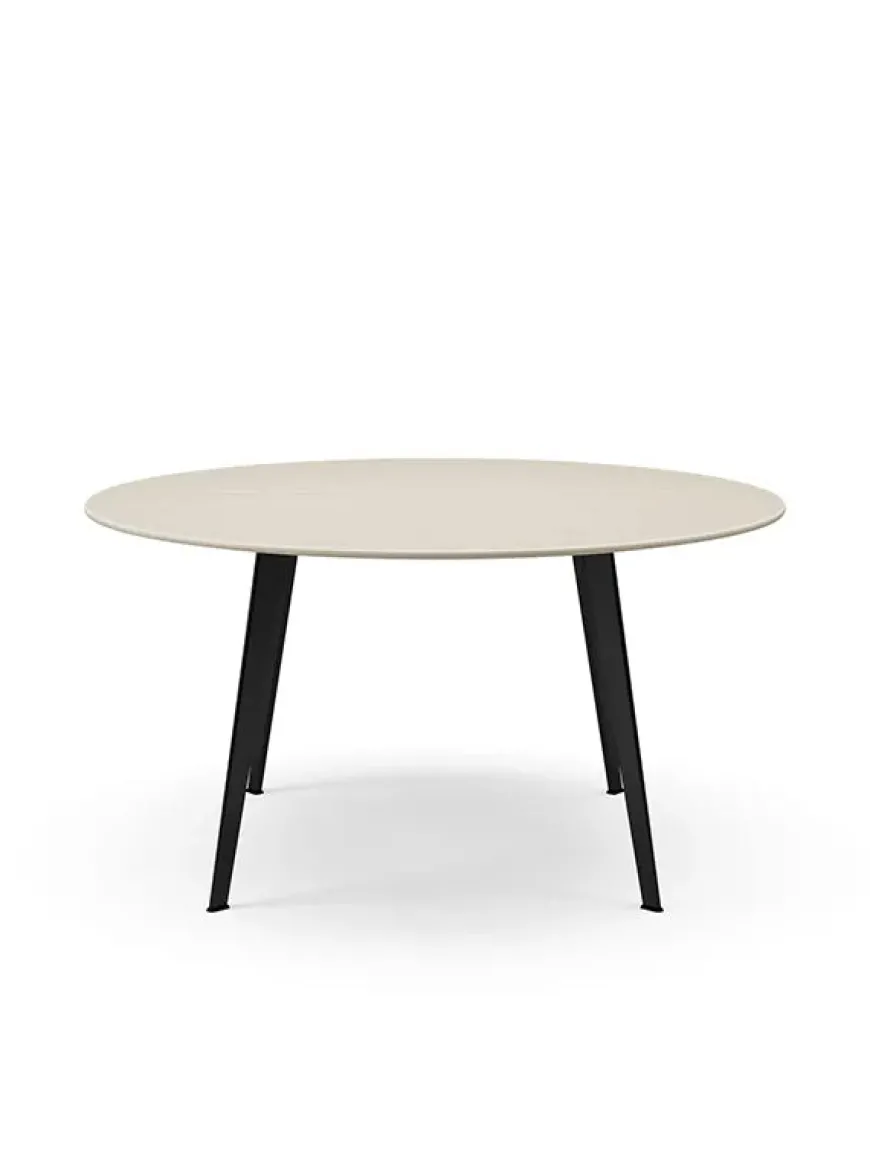 Mål: Ø: 160 cm Borde med bordplade i laminat og linoleum har en samlet højde på 73 cm.