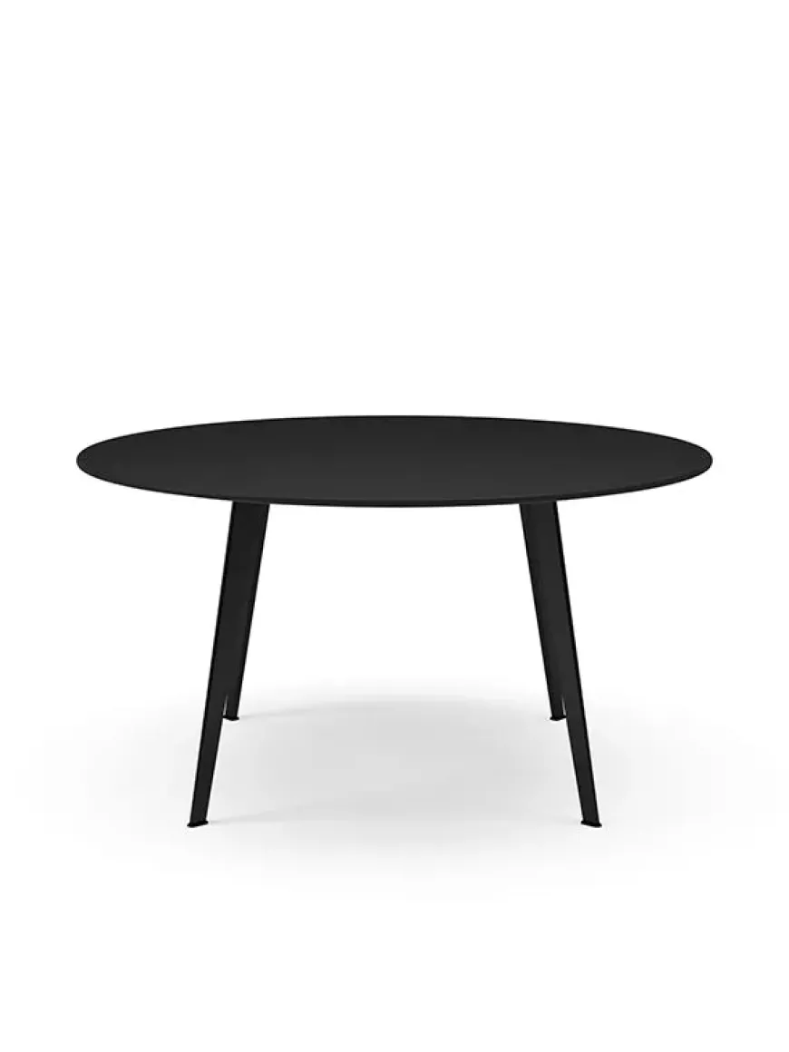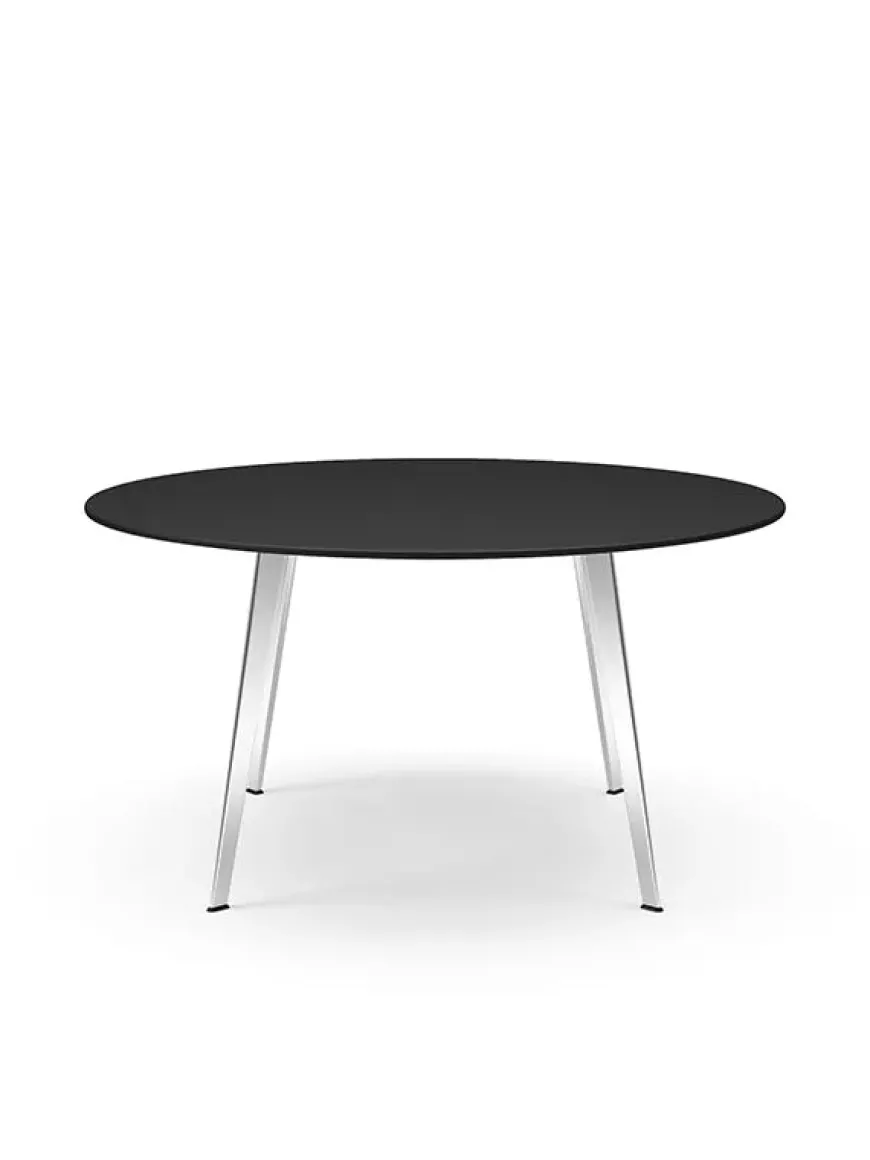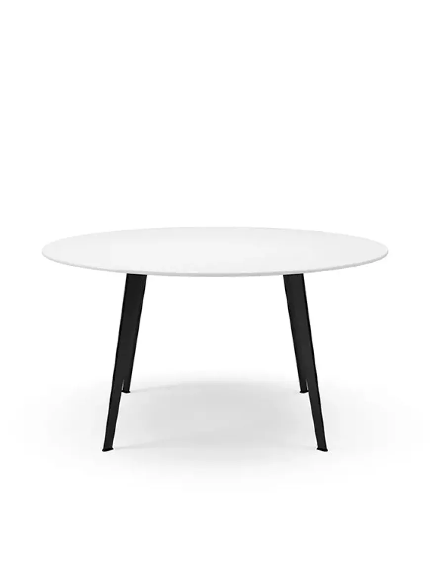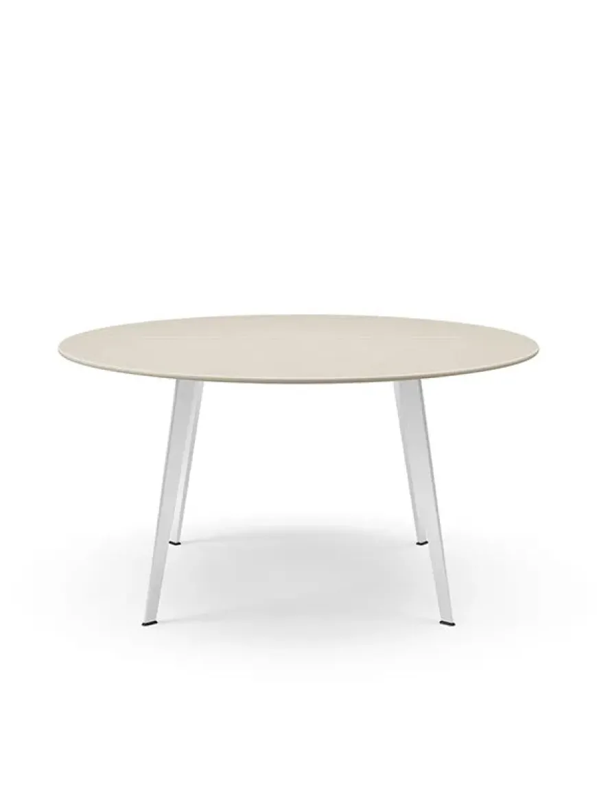Mål: Ø: 160 cm Borde med bordplade i laminat og linoleum har en samlet højde på 73 cm.