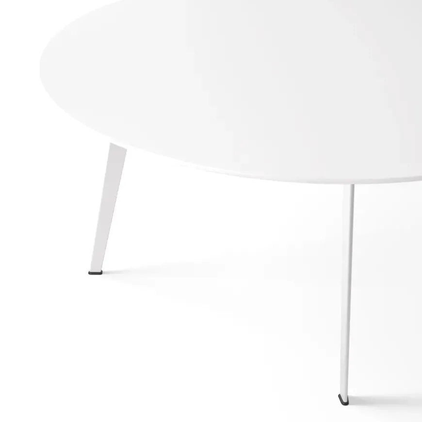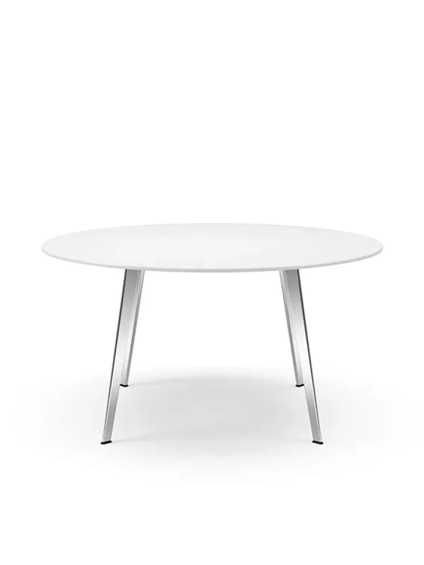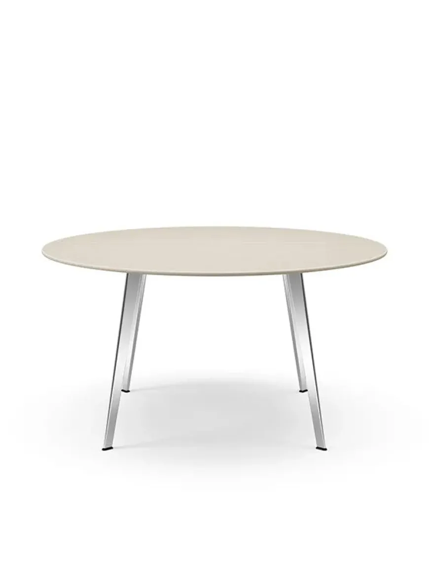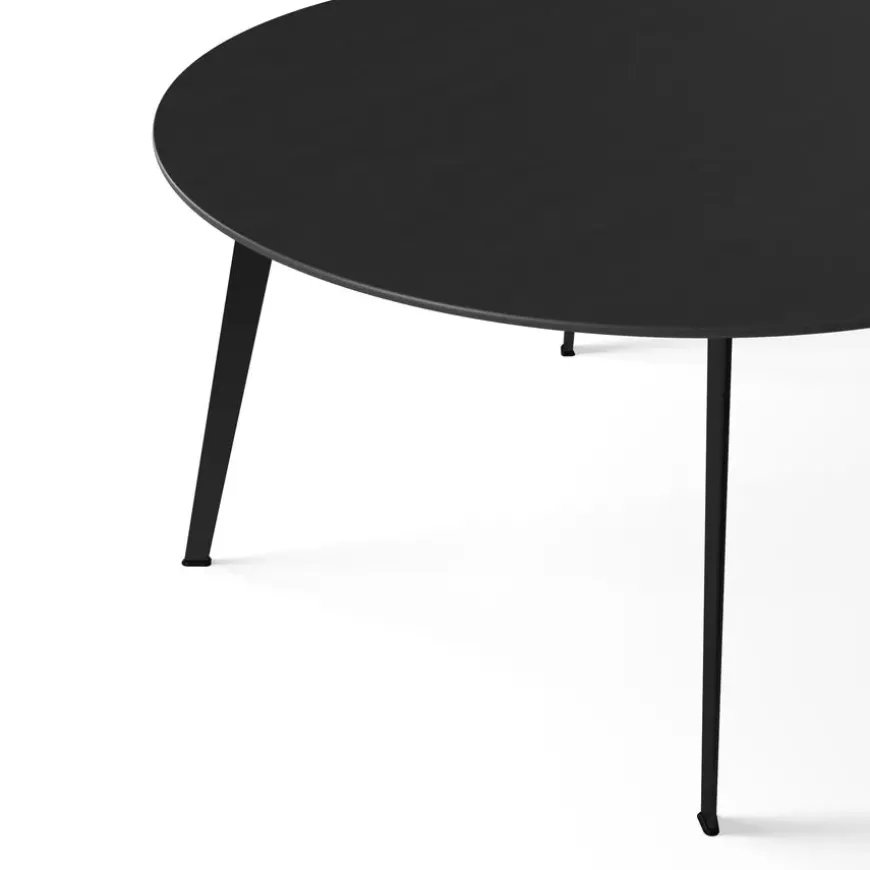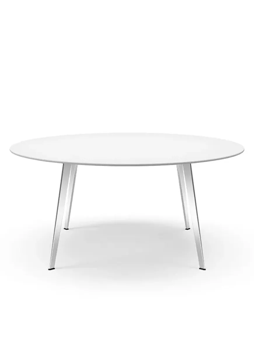 Mål: Ø: 160 cm Borde med bordplade i laminat og linoleum har en samlet højde på 73 cm.