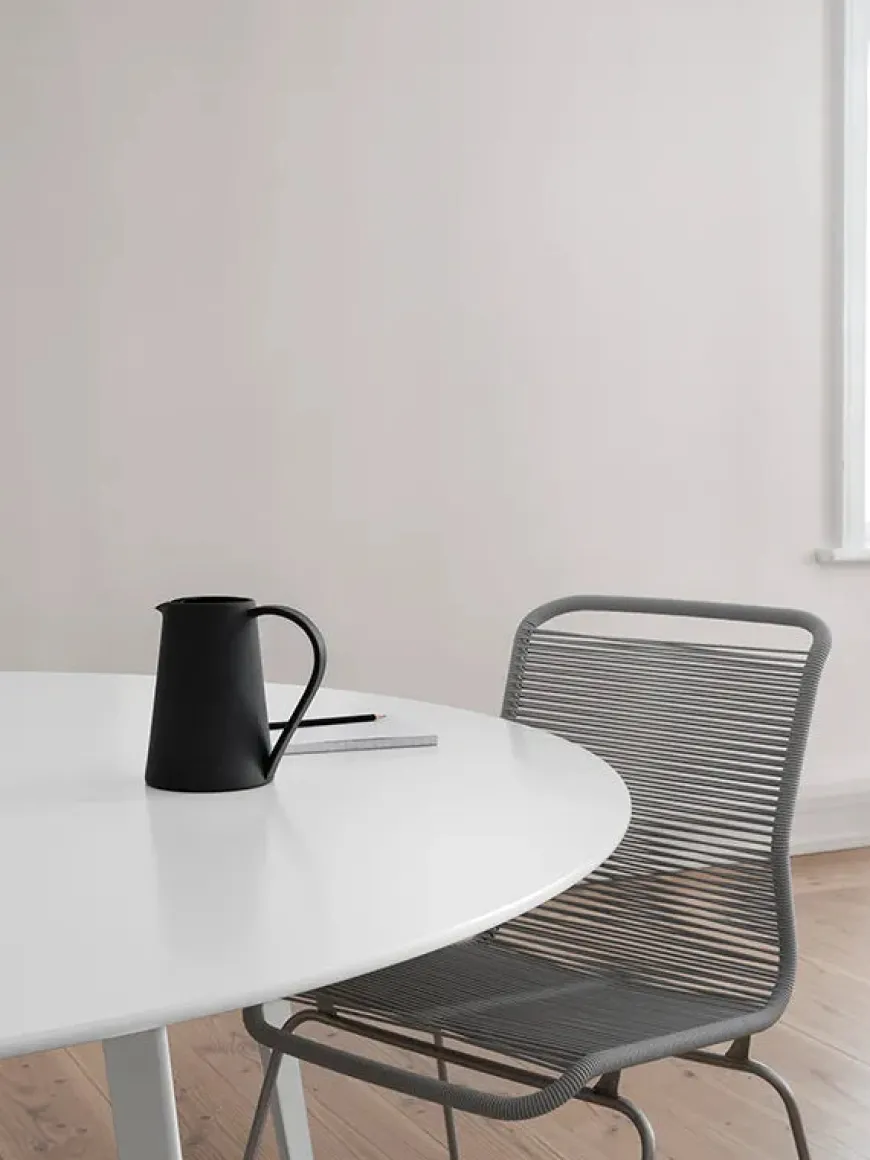 JW160 spisebordet fra Montana er designet af Jakob Wagner. JW bordserien er lanceret i 2017 og laves i alt i 8 forskellige størrelser. Alle bordene laves med lakeret stel i farvet sort eller Snow eller stel i poleret aluminium.
