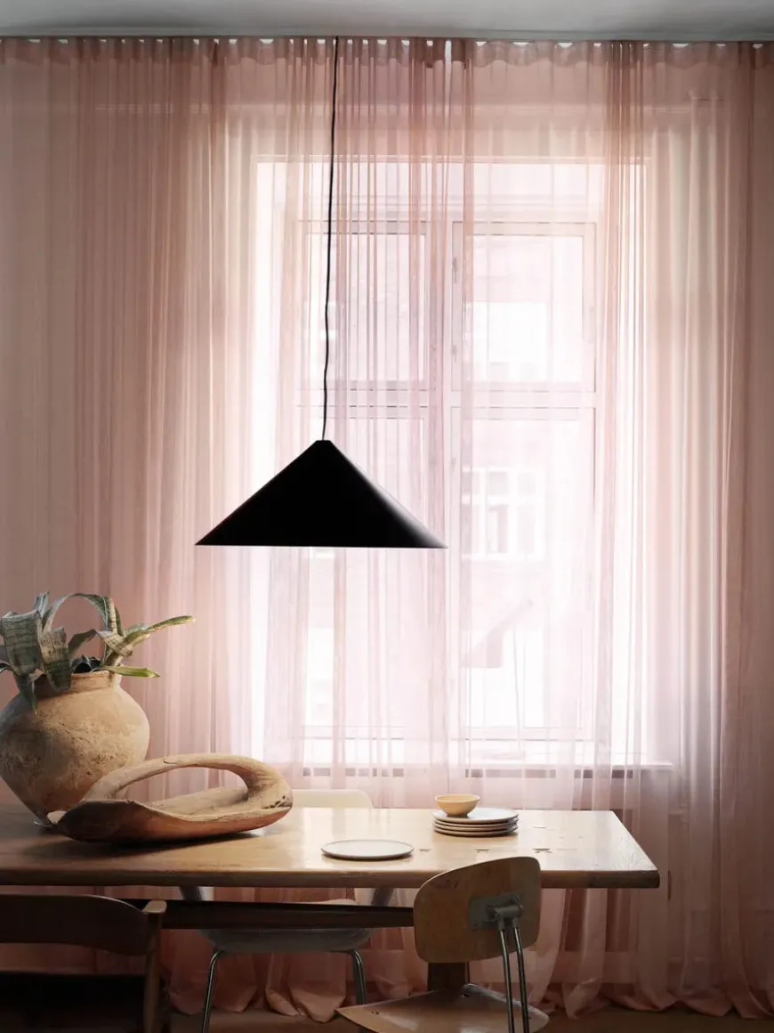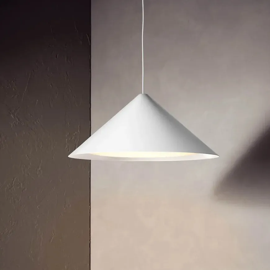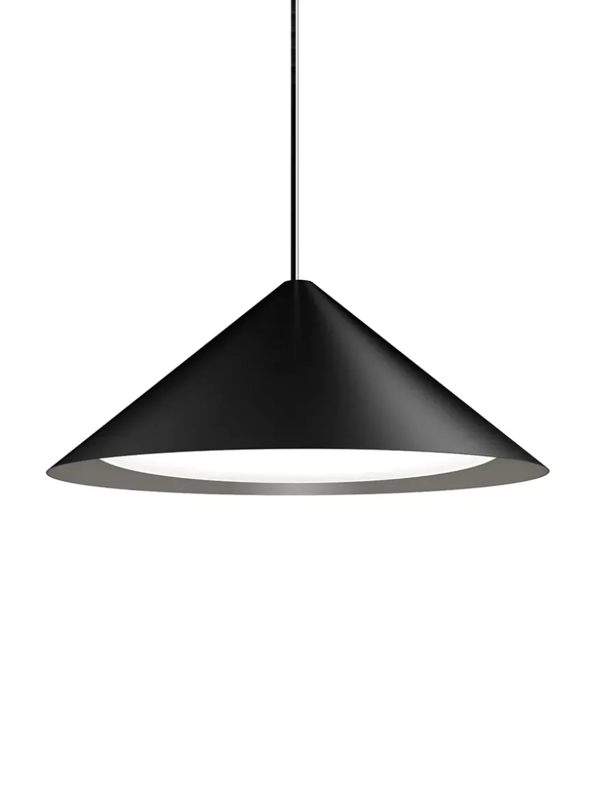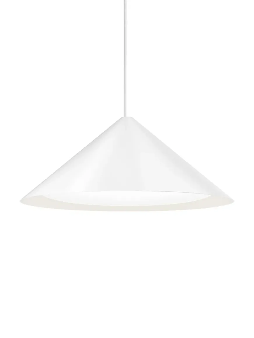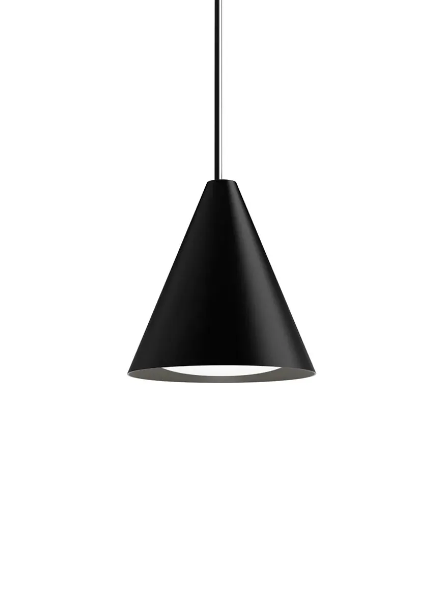 De fine pendler laves i sort eller hvid i fire forskellige størrelser, og er lavet med integreret LED-enhed.