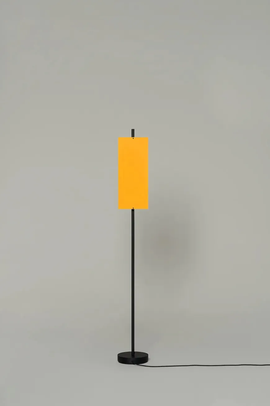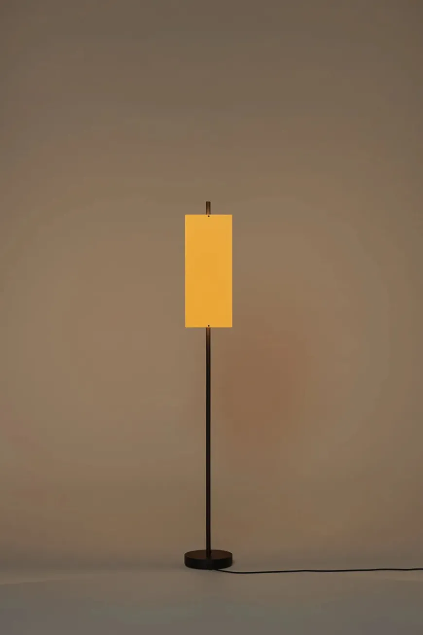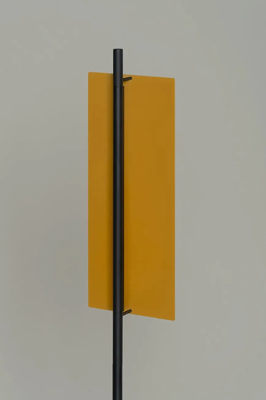 Lámina Dorada 45 gulvlampen har et minimalistisk og strømlinet design. Lampen passer perfekt ind i den moderne boligindretning med dens slanke silhuet. Lámina Dorada gulvlampen er udstyret med indbygget LED-lys og en tynd flad metalplade, der svagt men effektivt spreder lyset. Lampen ligner en lysende skulptur og kan bruges i flere rum i hjemmet. Den flade skærm er i en gylden farve, mens stellet er sort med mat finish.