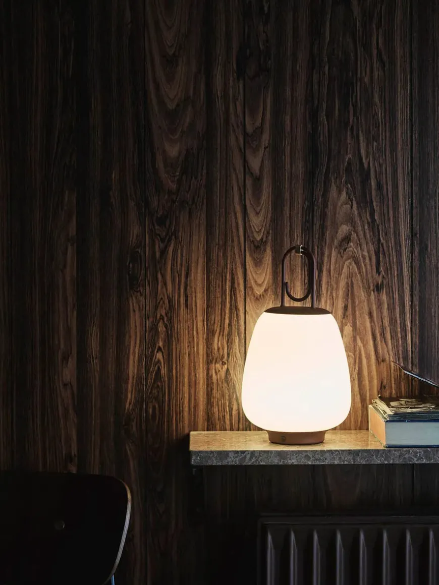 Lucca lampen fra &tradition er en trådløs og genopladelig lampe designet af Space Copenhagen i 2020. Lampen kan bruges alle steder i hjemmet og endda tages med udenfor og hænges op. Batteriet i lampen holder op til 12 timer oplades med USB.