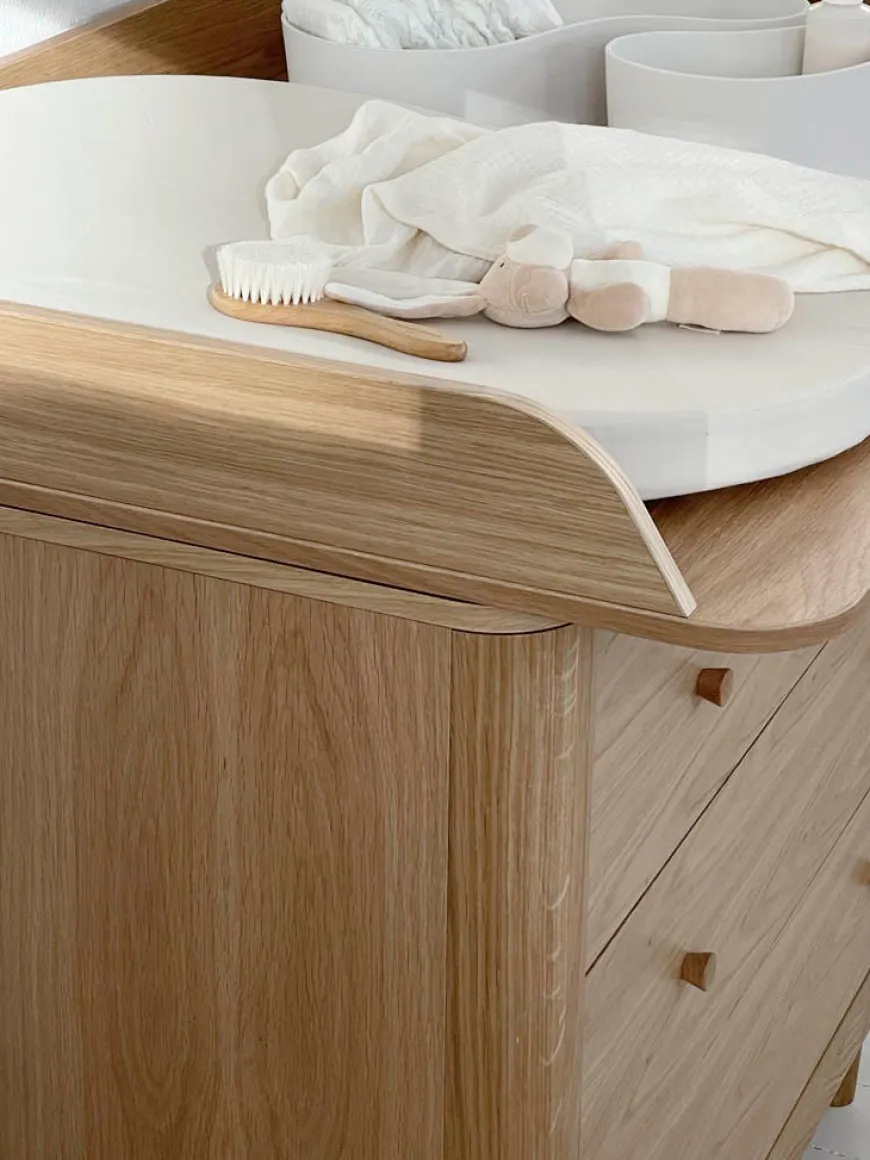 Nature Pusleenhed passer til Nature Kommoden, og omdanner således den smukke kommode til en puslekommode. Pusleenheden er rigeligt bred til både at indeholde puslepude og pusletilbehør. Pusleenheden kan nemt (og helt uden at lave synlige huller i kommoden), monteres på kommoden og dermed omdanne kommoden til en puslekommode. Pusleenheden kan ligeledes nemt afmonteres efter brug, og kommoden kan igen bruges som en klassisk kommode med masser af god opbevaringsplads. Barnet kan endda tage kommoden med sig, når han eller hun flytter hjemmefra. Nature Pusleenheden er tilpasset, så den er godkendt til børn, der vejer max 15 kg.