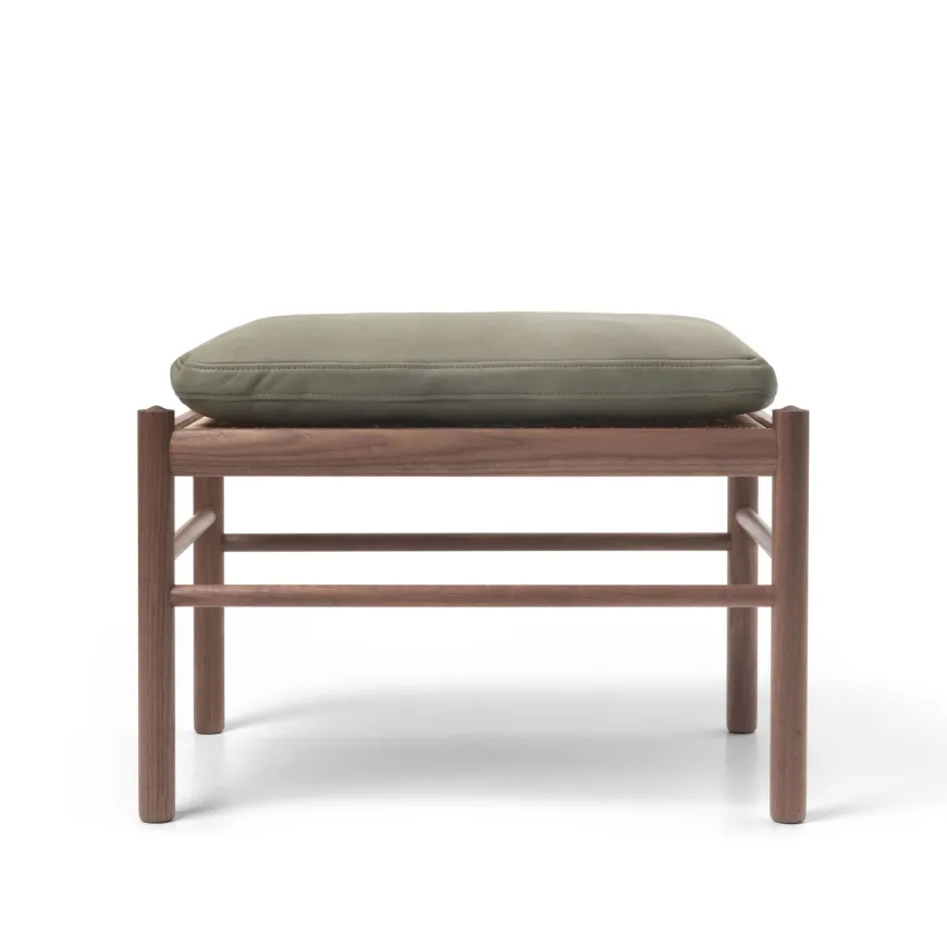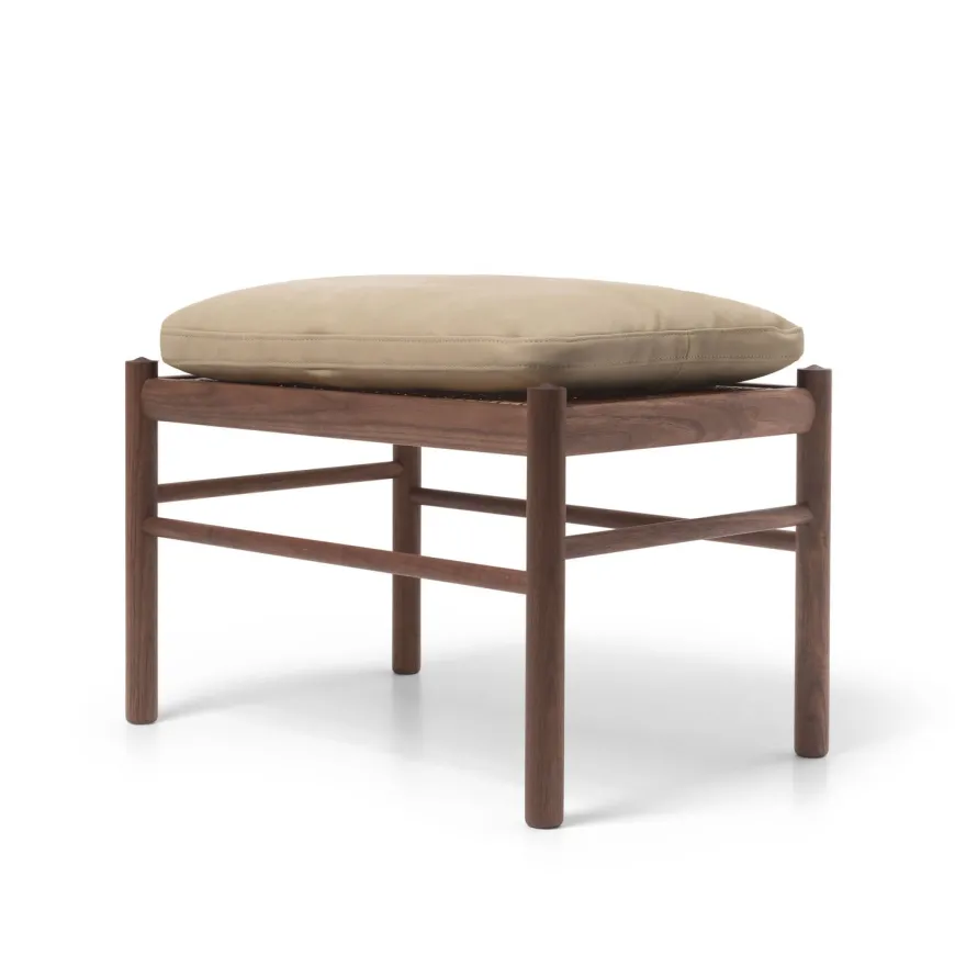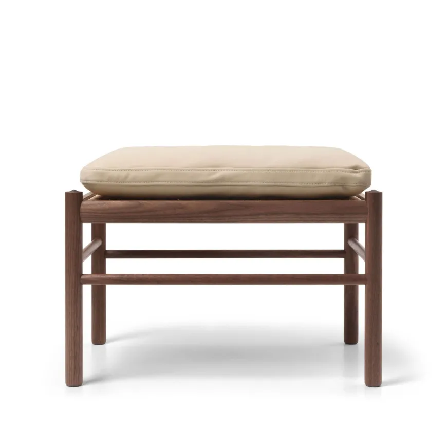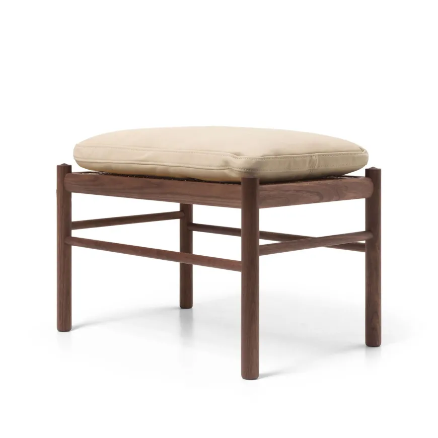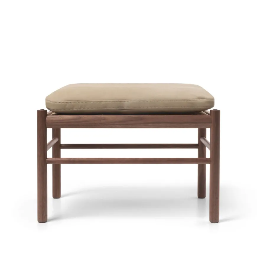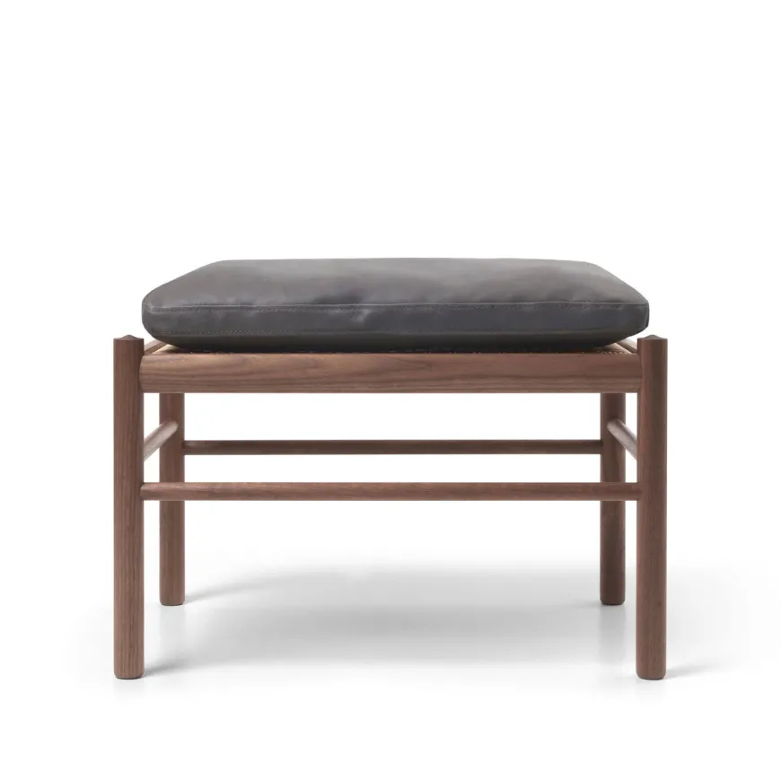 OW149F er den elegante fodskammel til Ole Wanschers ikoniske Colonial-lænestol. Den slanke konstruktion i massivt, olieret valnød lader håndværket tale, mens den bløde TERRA®-læderhynde indbyder til ro og afslapning. Under hynden ligger et klassisk, håndflettet rørflet-sæde, som giver lethed og lang holdbarhed. I olieret valnød får træet dyb glød, og TERRA®-læderets silkematte anilinfinish tilfører en nutidig varme – smuk alene i stuen eller som naturlig forlængelse af din Colonial.