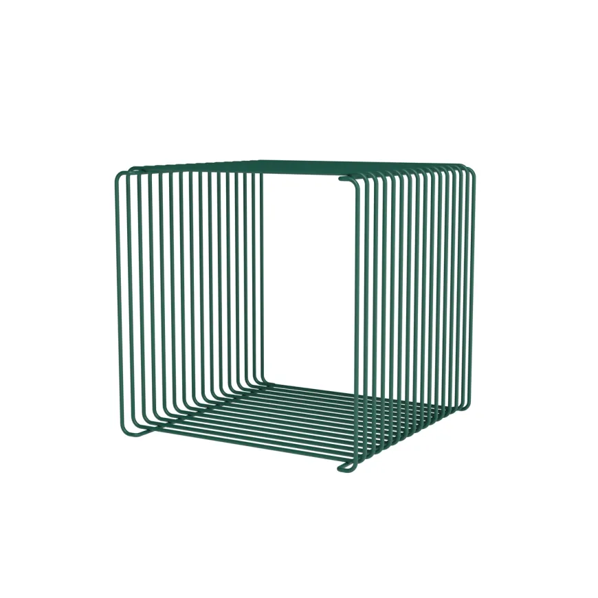 Montana Panton Wire Single i farven Pine er en let og ikonisk trådreol designet af Verner Panton. Den luftige konstruktion giver et svævende udtryk og passer perfekt til små rum. Med en dybde på 25,7 cm fungerer den både alene og i modulopbygning – på væg, gulv eller som hylde. Den grønne tone tilfører ro og karakter.