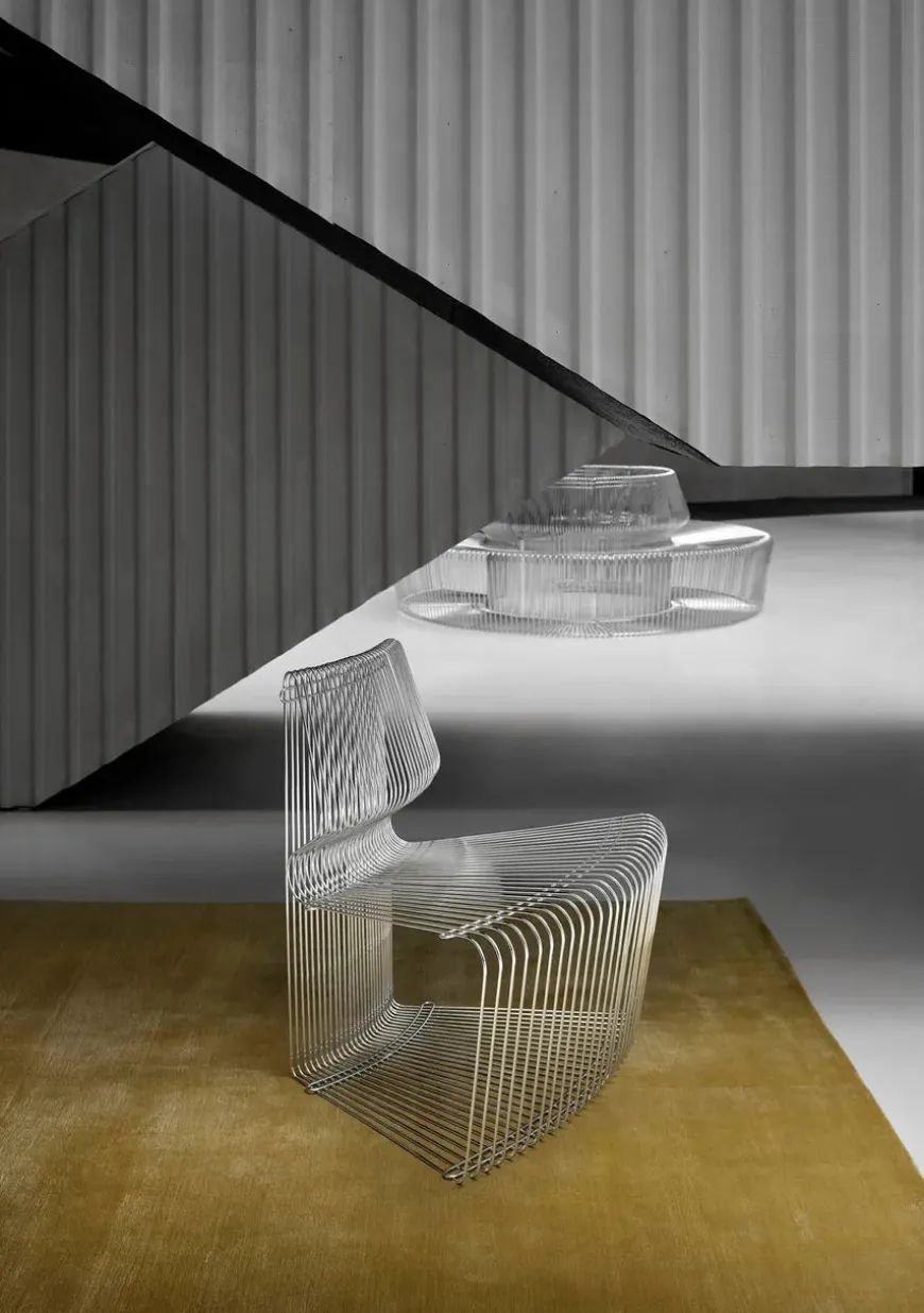 Det modulære møbelsystem Pantonova, blev designet af Verner Panton i 1971. Skab organiske, skulpturelle loungemøbler med de tre moduler – eller brug Pantonova Concave som en enkeltstående stol i stuen. De tre Pantonova moduler , og kan frit sammensættes til at danne geometriske og kurvede sofaopstillinger. Pantonova kan også fint anvendes som en enkeltstående skulpturel stol – med eller uden hynde. Materiale: Pantonova stolemodulerne består af 5 mm ståltråd, som er forarbejdet og forkromet eller pulverlakeret. Farve: Krom eller Black Red*. *Black Red er desværre ikke afbilledet. Mål: Højde: 73.2 cm Bredde: 38.2/77.2 cm Dybde: 57.8 cm Sædehøjde: 40 cm