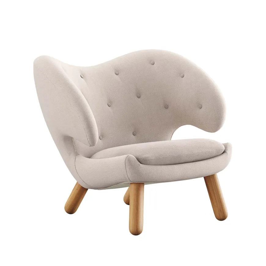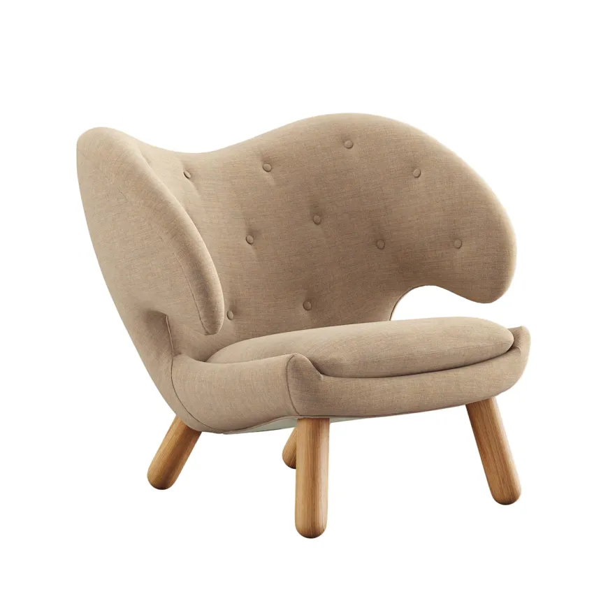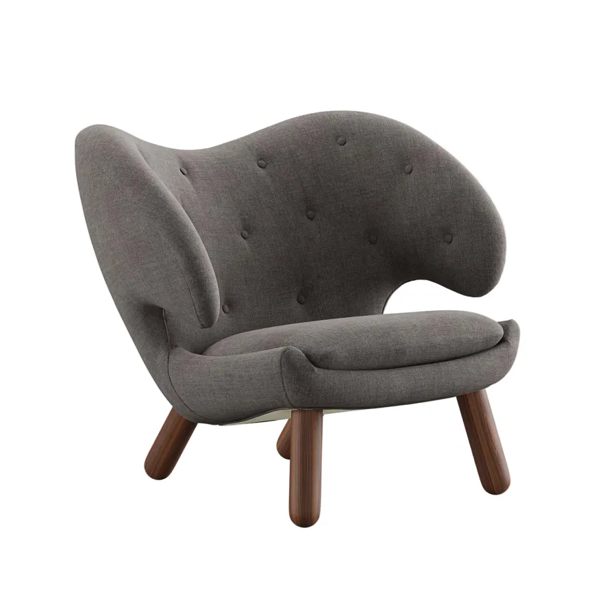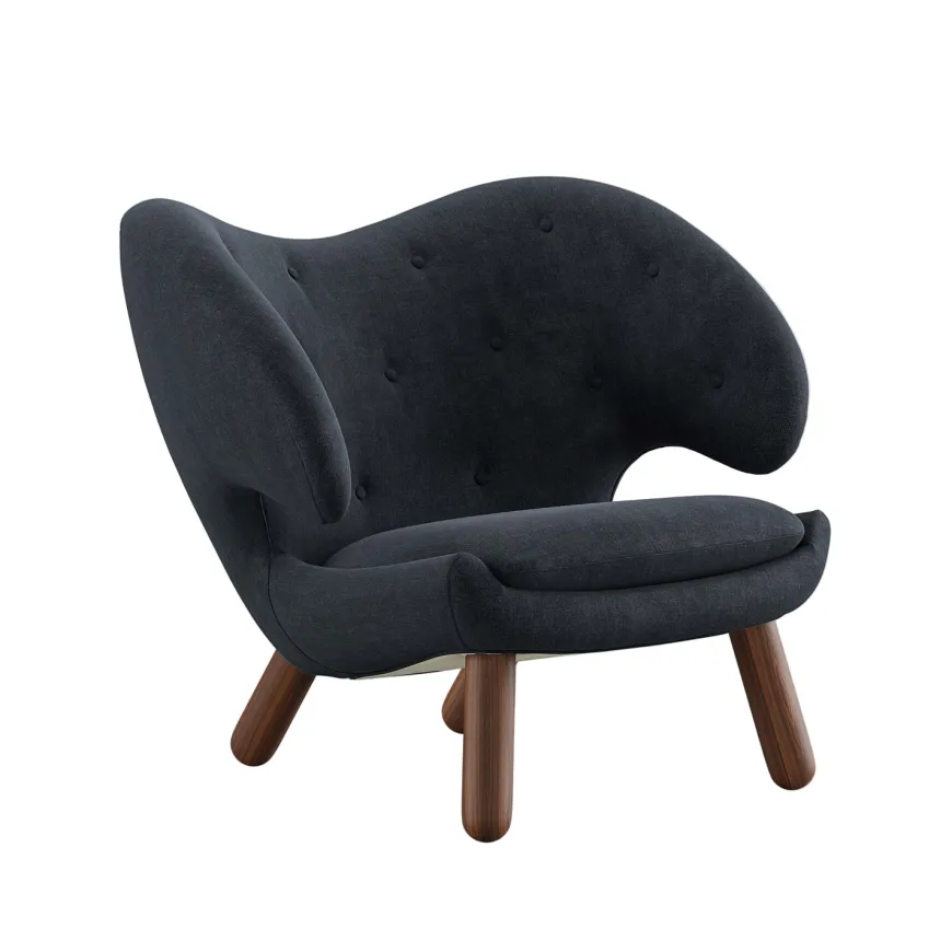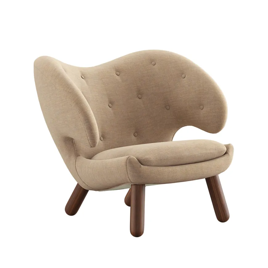 Pelikan stolen af Finn Juhl er en skulpturel loungefavorit, der indbyder til at synke ned og blive siddende. De bløde, organiske kurver omfavner kroppen og giver flere naturlige siddestillinger, mens den løse hynde understøtter komforten. Stolen polstres i hånden i Danmark i tekstil, læder eller fåreskind, og kombinationen med ben i valnød giver et varmt og eksklusivt udtryk, der passer elegant ind i både moderne og klassiske hjem. Designet blev præsenteret i 1940 og er siden blevet et ikon for dansk møbelkunst med sin legende form og fine håndværk. Vælg den i din foretrukne polstring og oplev hvordan dens generøse proportioner og lave sædehøjde skaber en afslappet loungezone i stuen, soveværelset eller i entréens læsehjørne.