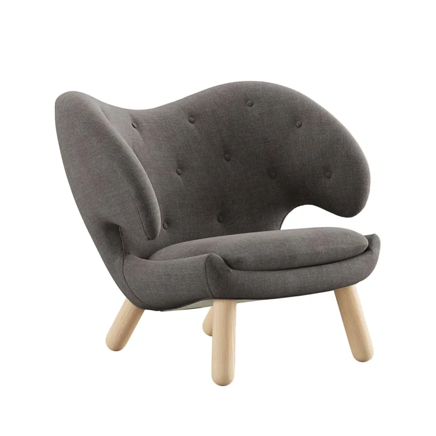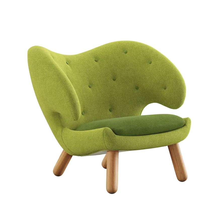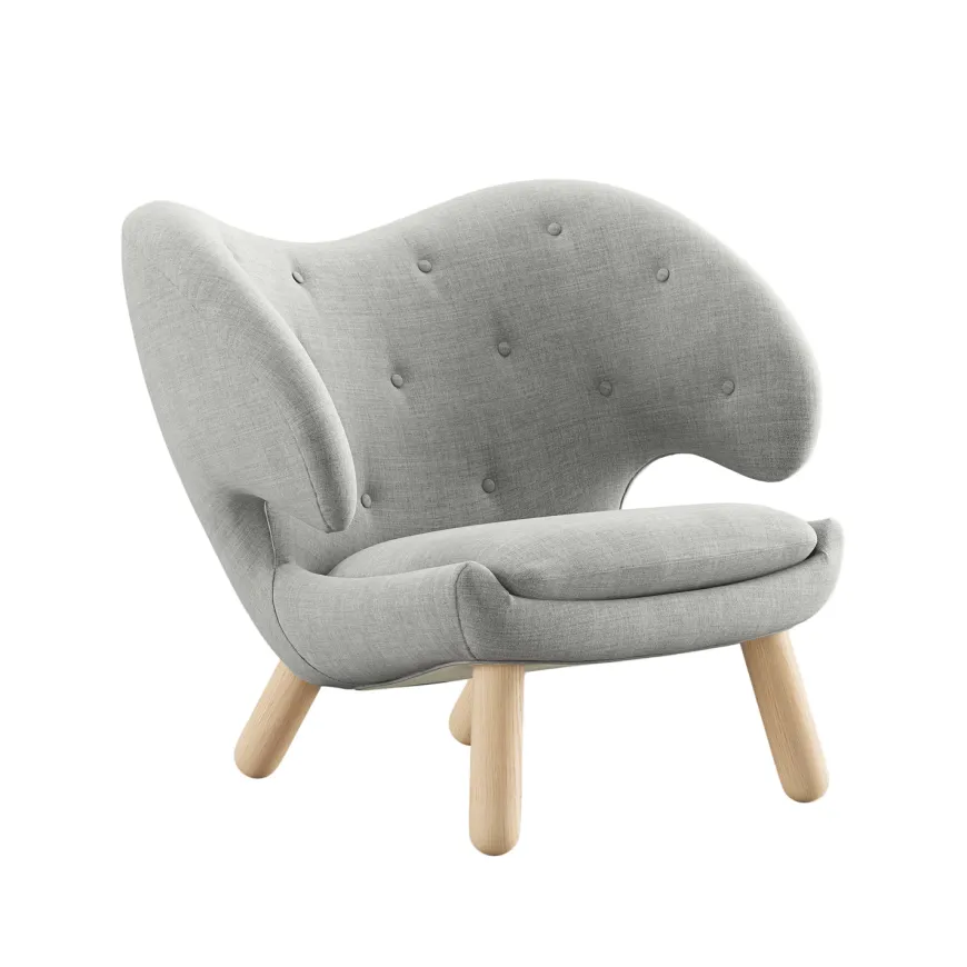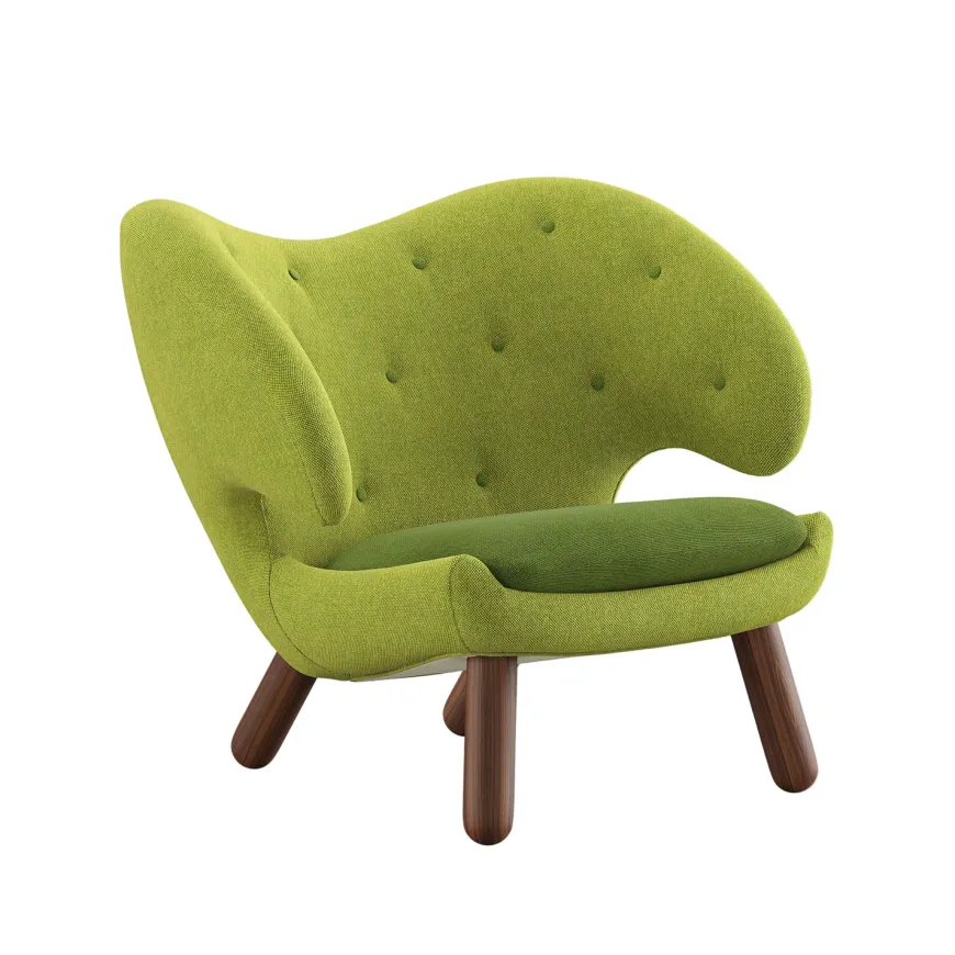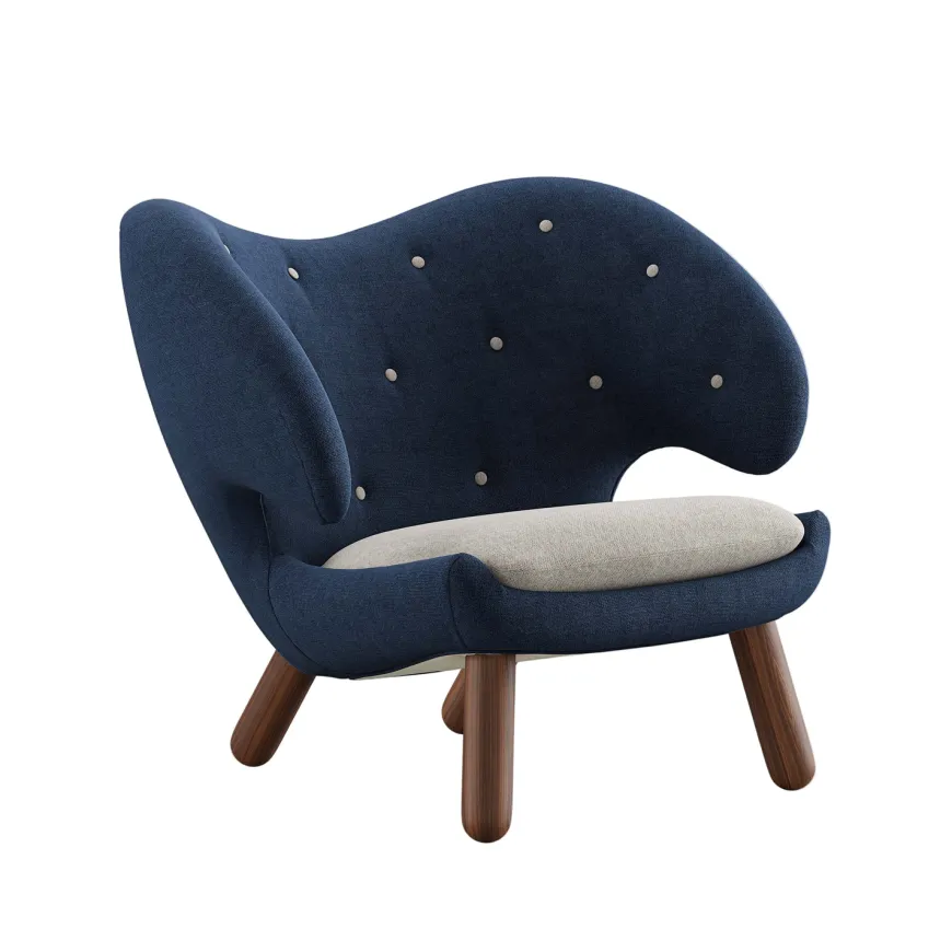 Pelikan stolen af Finn Juhl er en skulpturel loungefavorit, der indbyder til at synke ned og blive siddende. De bløde, organiske kurver omfavner kroppen og giver flere naturlige siddestillinger, mens den løse hynde understøtter komforten. Stolen polstres i hånden i Danmark i tekstil, læder eller fåreskind, og kombinationen med ben i valnød giver et varmt og eksklusivt udtryk, der passer elegant ind i både moderne og klassiske hjem. Designet blev præsenteret i 1940 og er siden blevet et ikon for dansk møbelkunst med sin legende form og fine håndværk. Vælg den i din foretrukne polstring og oplev hvordan dens generøse proportioner og lave sædehøjde skaber en afslappet loungezone i stuen, soveværelset eller i entréens læsehjørne.