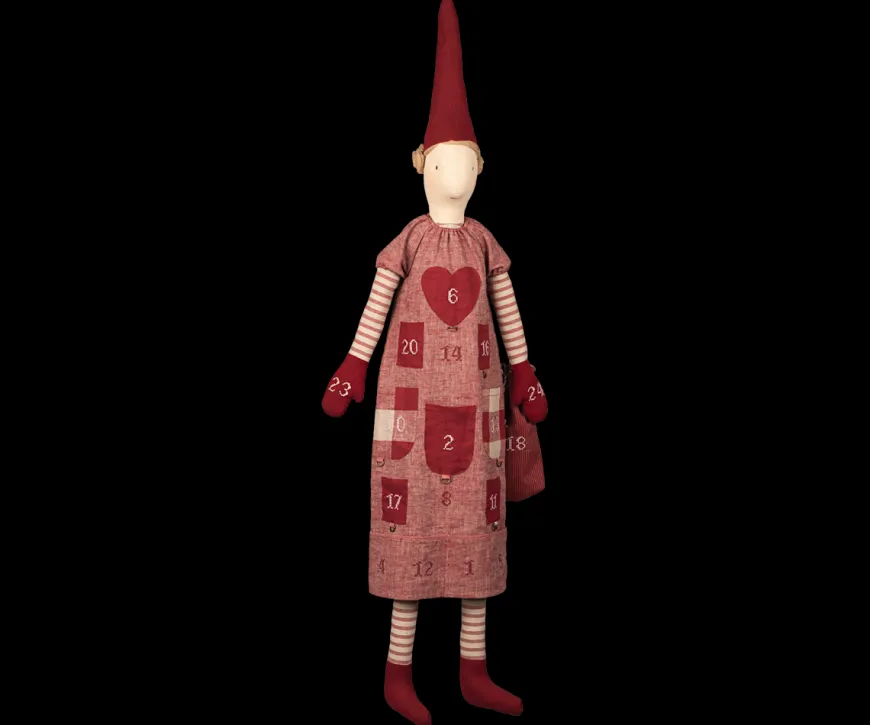 Gør nedtællingen til jul magisk med Mailegs Pixy kalenderpige. Denne imponerende Pixy i størrelse 121 cm er iført en klassisk kjole med lommer, hvor små gaver eller overraskelser kan gemmes i dagene op til jul. Figuren er fremstillet i bløde tekstiler med håndlavede detaljer, der gør hver kalenderpige unik. Hæng hende op på væggen eller placer hende som en del af julepynten – hun bliver med garanti et blikfang og en hyggelig tradition i december. En funktionel og dekorativ figur, der kombinerer Mailegs charmerende univers med julekalenderens spænding.