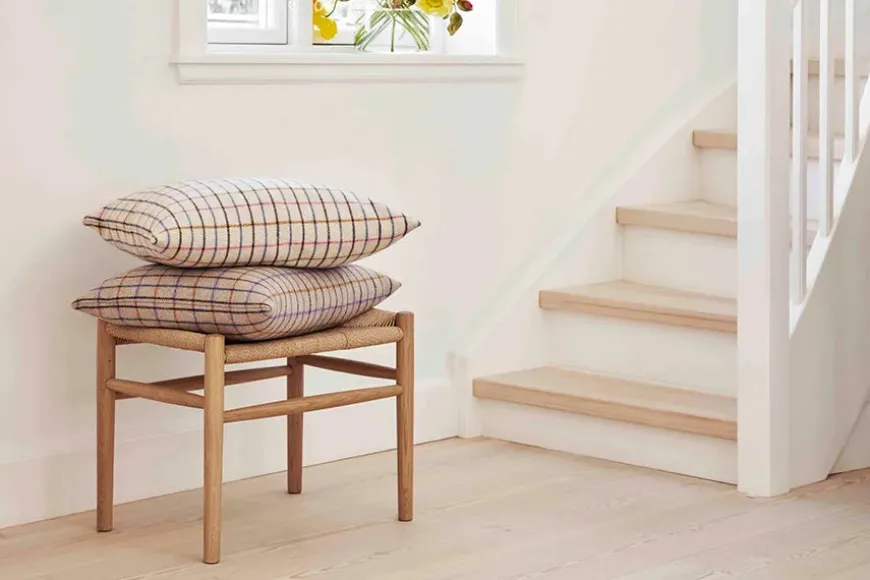 R36 puden er betrukket med det klassiske Hestedækken tekstil i en ny og flot lilla version.