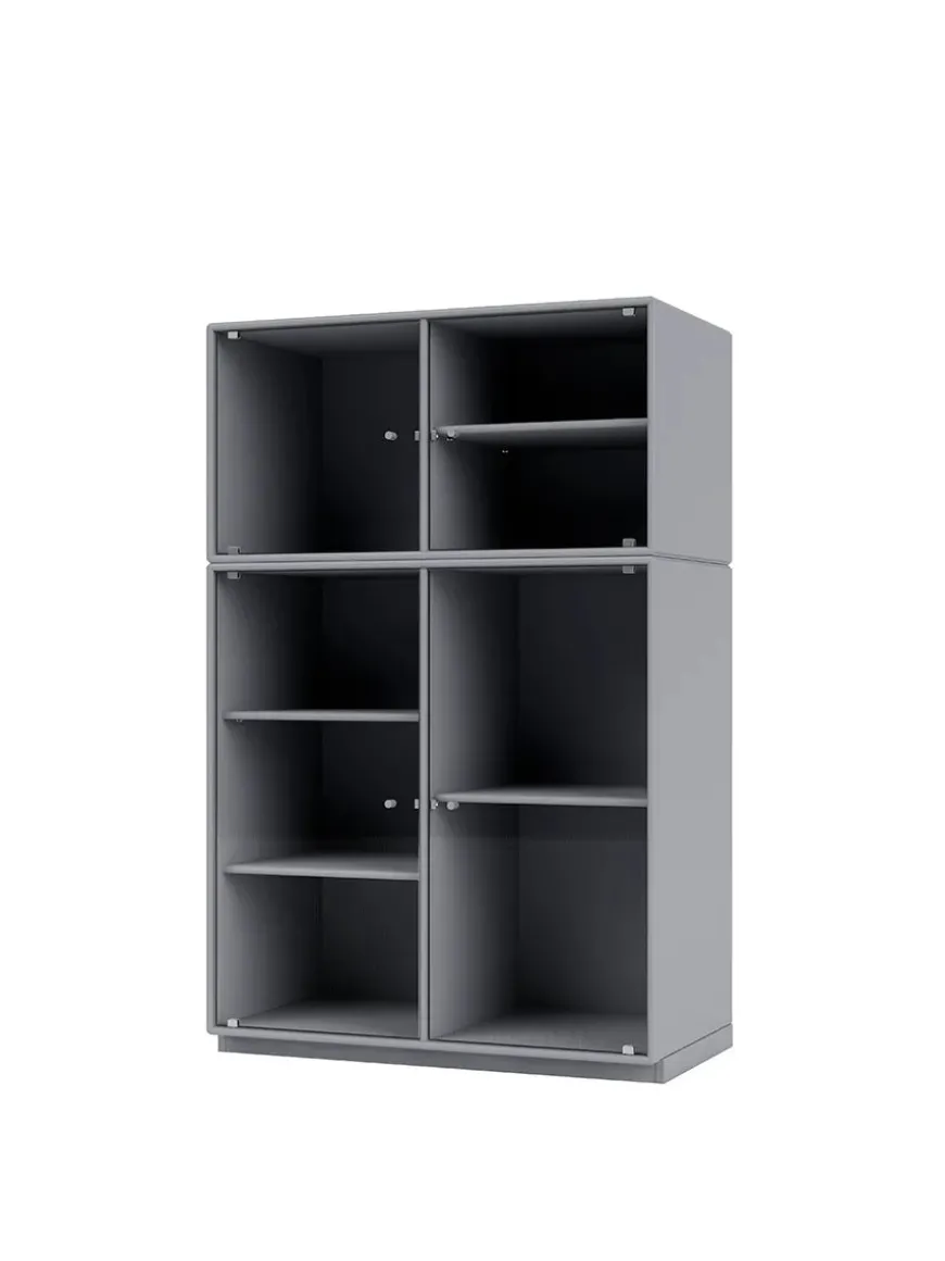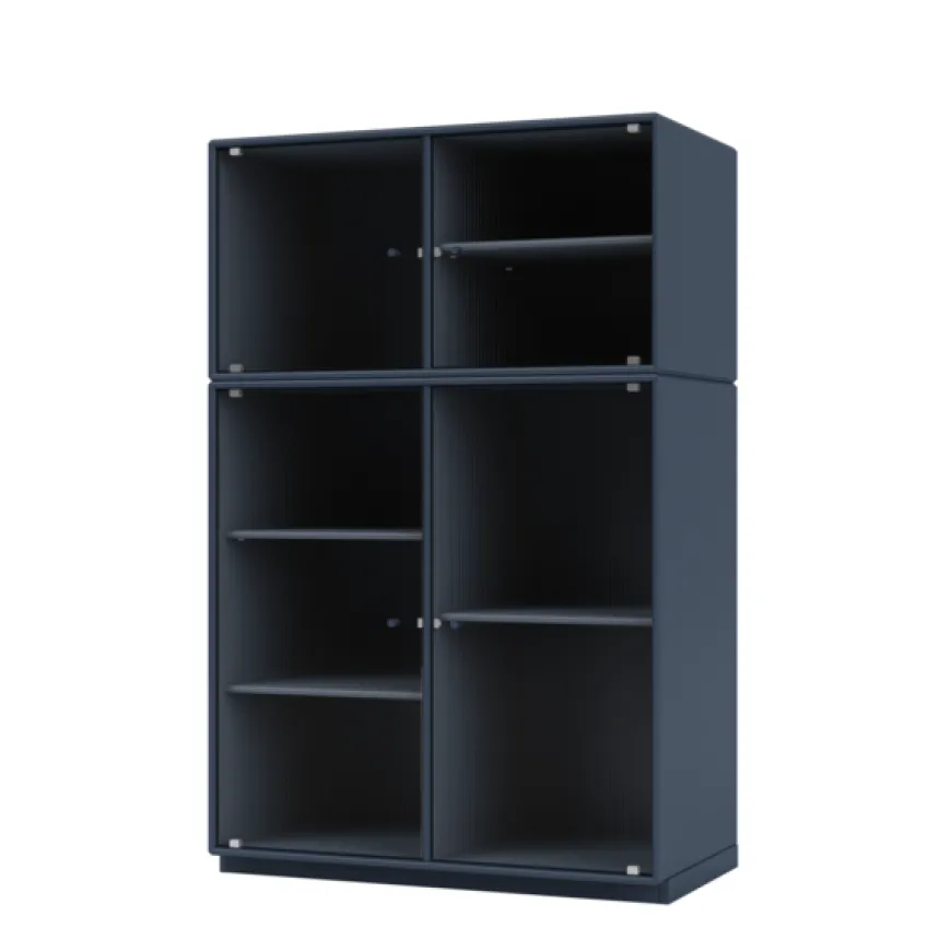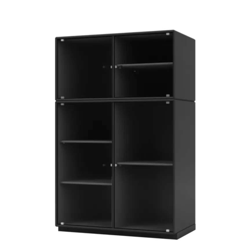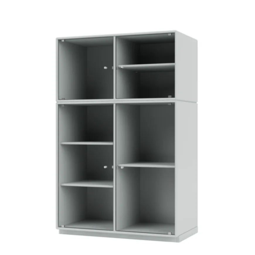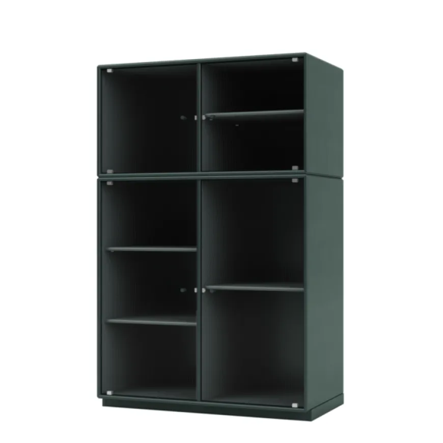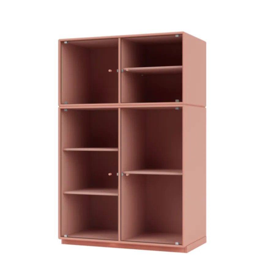 Vær opmærksom på at glaslågerne er i matteret, rillet glas Ripple III er et vitrineskab, der kan rumme dine finere ejendele, som du ikke nødvendigvis ønsker at gemme væk. Skabet har en perforeret glaslåge med lakerede greb. Ripple III skabet er certificeret med det danske indeklimamærke og det officielle EU Ecolabel, hvilket gør det til et sikkert valg for dig, dine omgivelser og miljøet. Skabet kommer i Montanas poetiske farvepalet med 41 nuancer, som er udarbejdet af danske Margrethe Odgaard.
