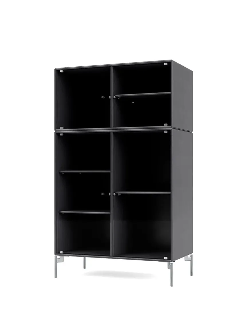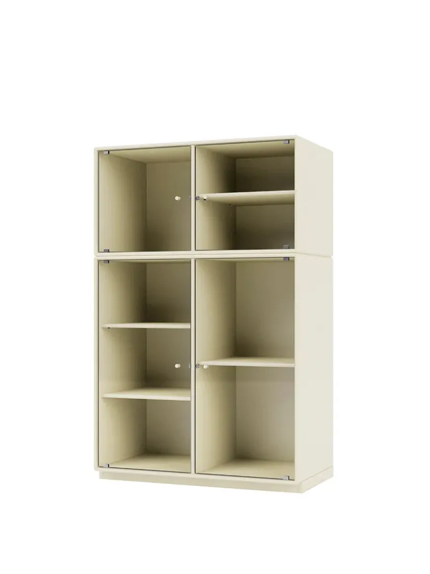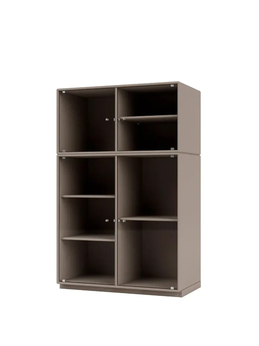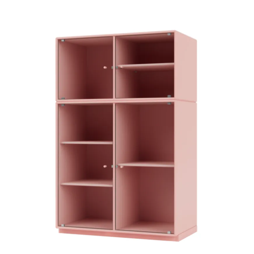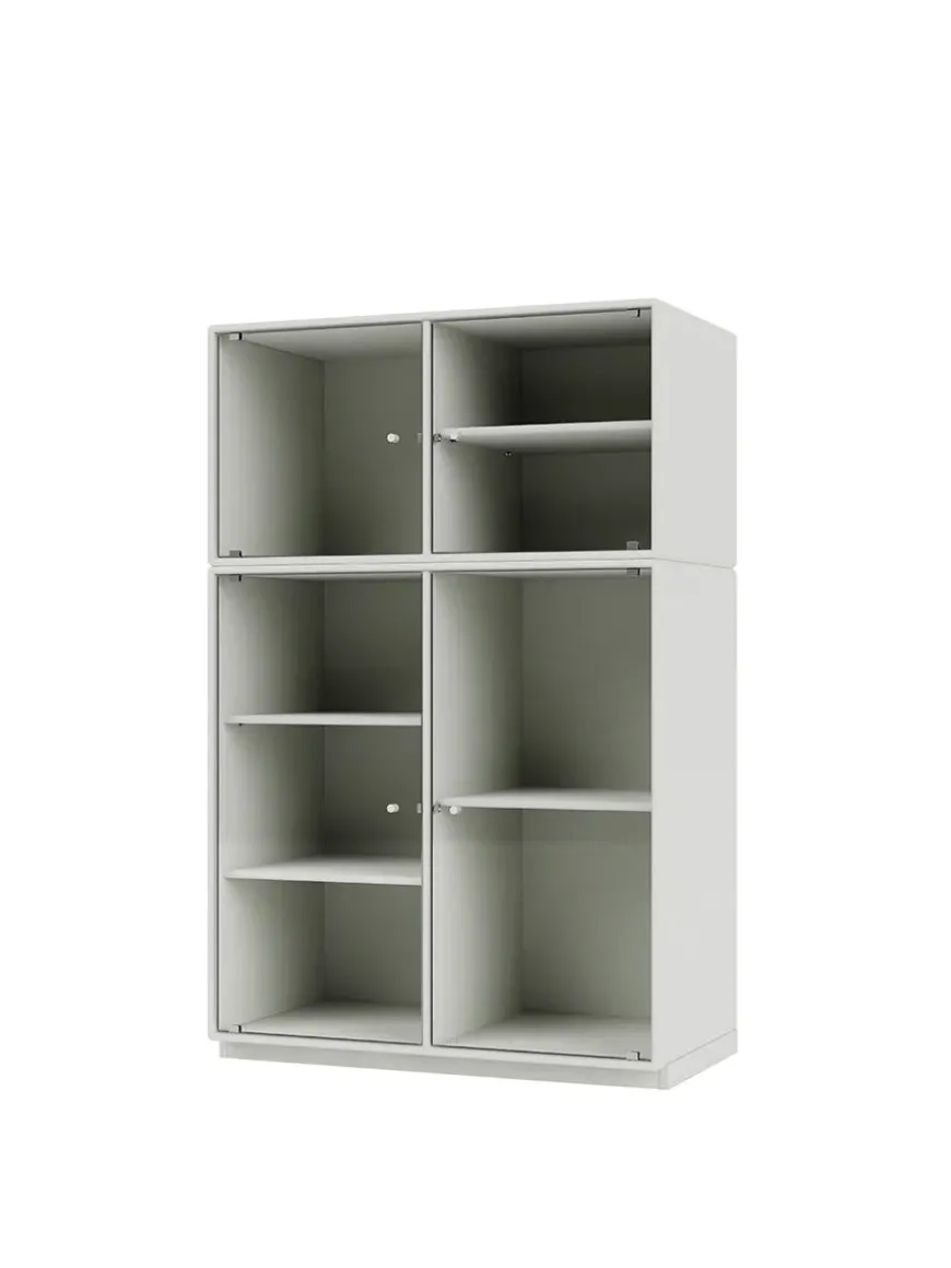 Vær opmærksom på at glaslågerne er i matteret, rillet glas Ripple III er et vitrineskab, der kan rumme dine finere ejendele, som du ikke nødvendigvis ønsker at gemme væk. Skabet har en perforeret glaslåge med lakerede greb. Ripple III skabet er certificeret med det danske indeklimamærke og det officielle EU Ecolabel, hvilket gør det til et sikkert valg for dig, dine omgivelser og miljøet. Skabet kommer i Montanas poetiske farvepalet med 41 nuancer, som er udarbejdet af danske Margrethe Odgaard.