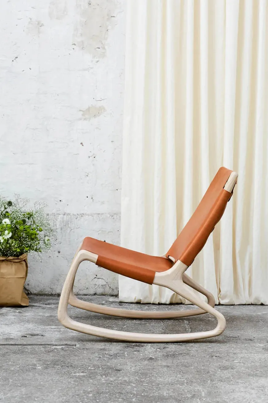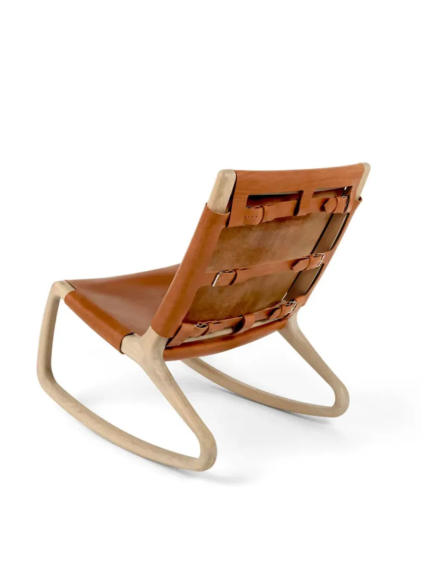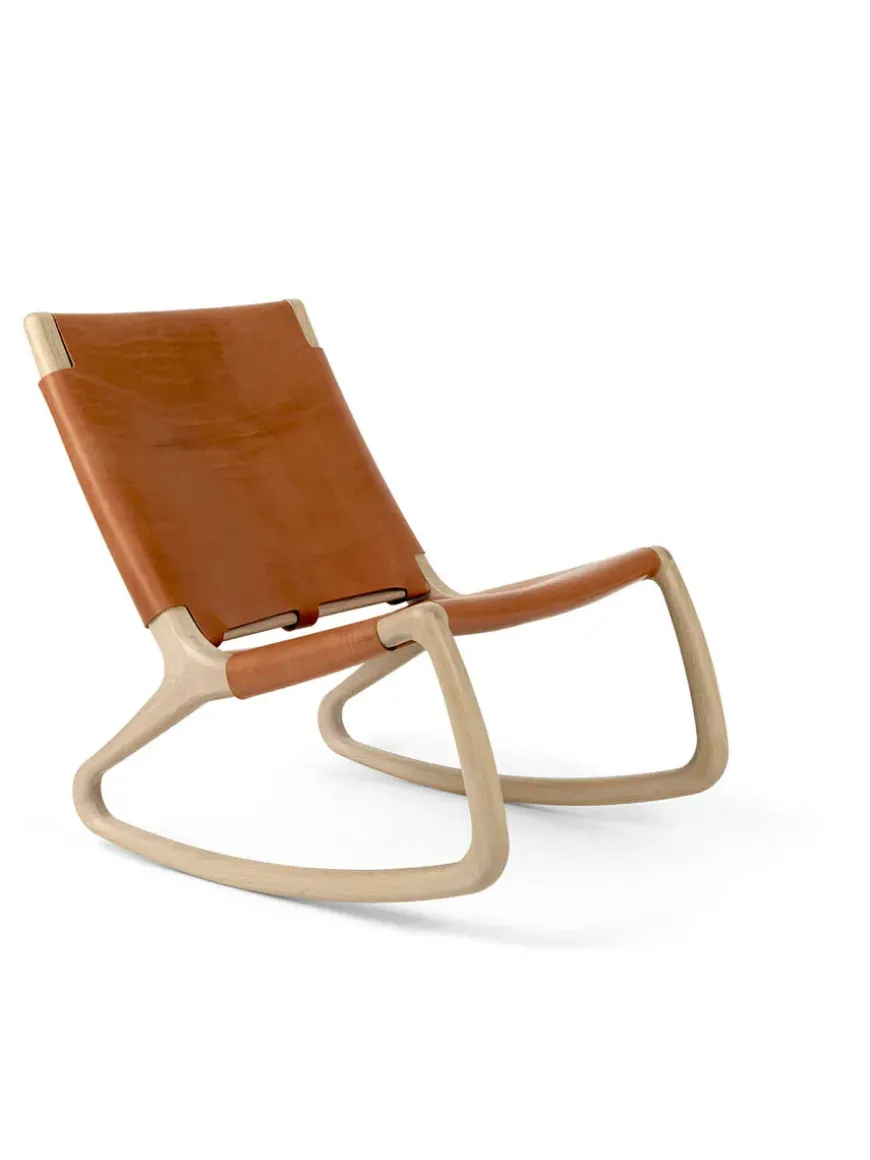 Rocker gyngestol, mat lakeret eg med whisky farvet læder fra Mater