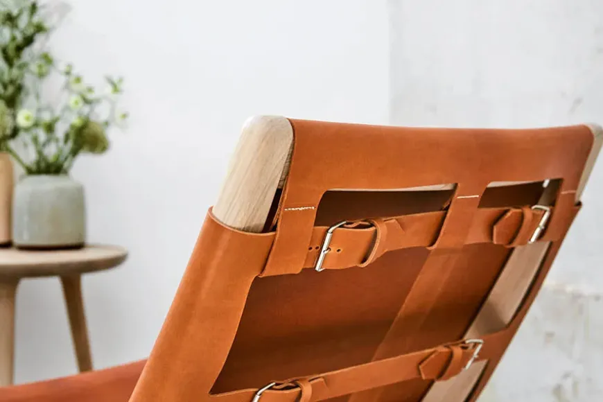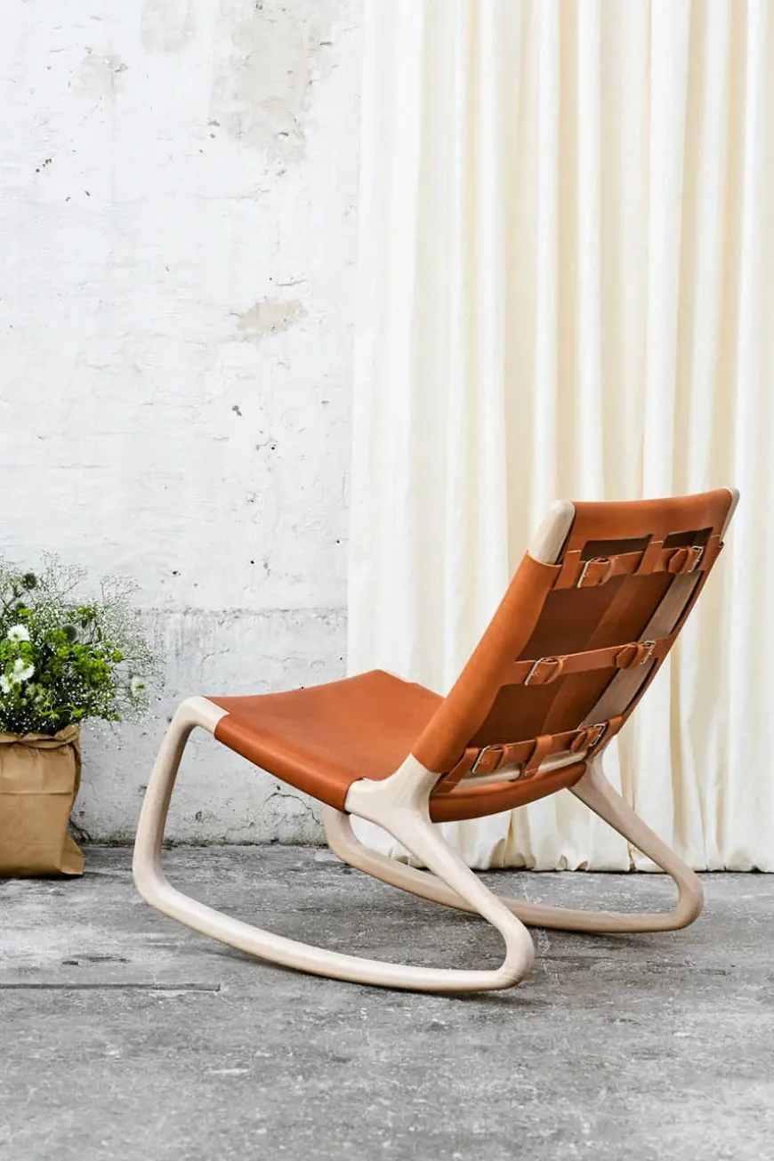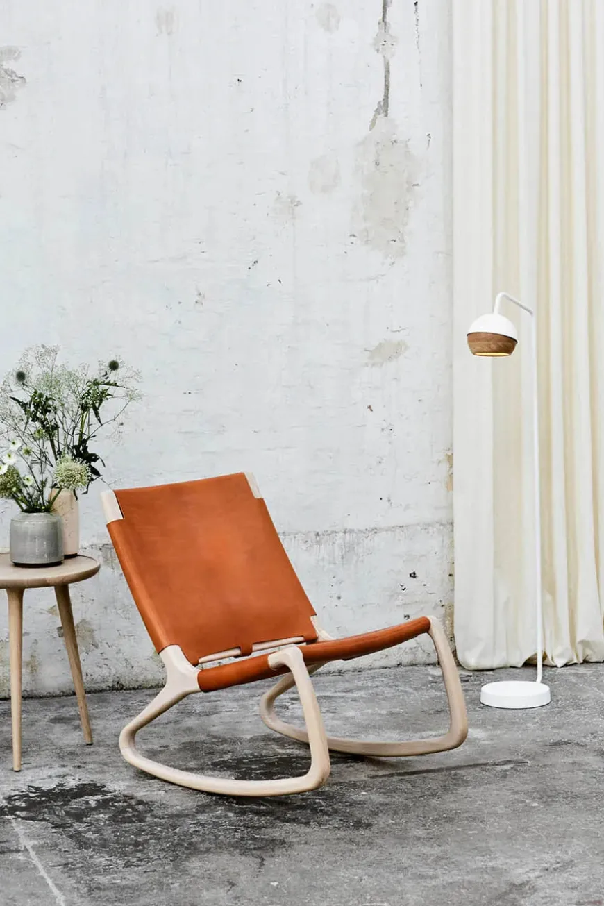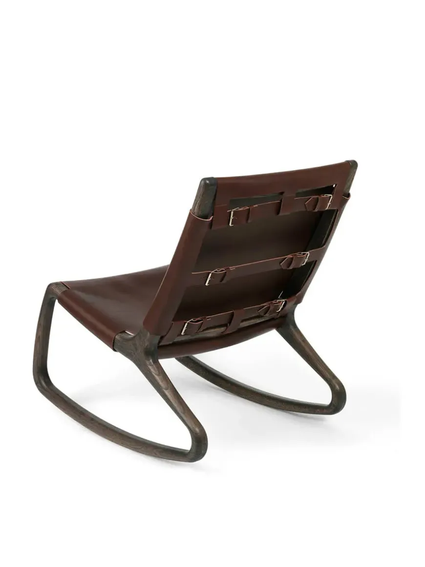 Rocker gyngestol, mat lakeret eg med whisky farvet læder fra Mater