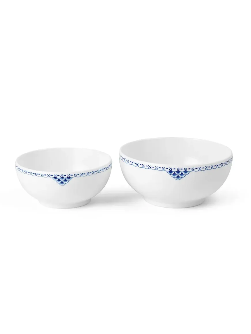 Royal Copenhagen har her lavet et sæt af to Prinsesse-skåle på 73 cl og 110 cl. De klassiske skåle er uundværlige elementer på middagsbordet.
