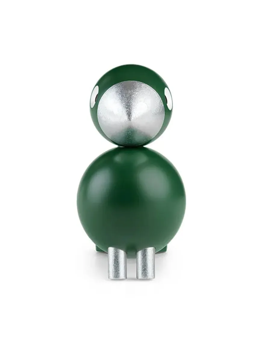 Den smukke Sangfugl Georg af Kay Bojesen i mørkegrøn med næb og ben beklædt i bladsølv. Sangfuglen hedder Georg, som hyldest til Kay Bojesens læretid som sølvsmed hos Georg Jensen, hvor han blev udlært i 1910. Den skønne grønne nuance og de fine detaljer i sølv er inspireret af gamle sølvsmykker fra denne tid og passer perfekt sammen med de andre sangfugle fra Kay Bojesen. Farve: Grøn/sølv Materiale: Malet bøg Højde: 15,5 cm Se alle sangfuglene her: