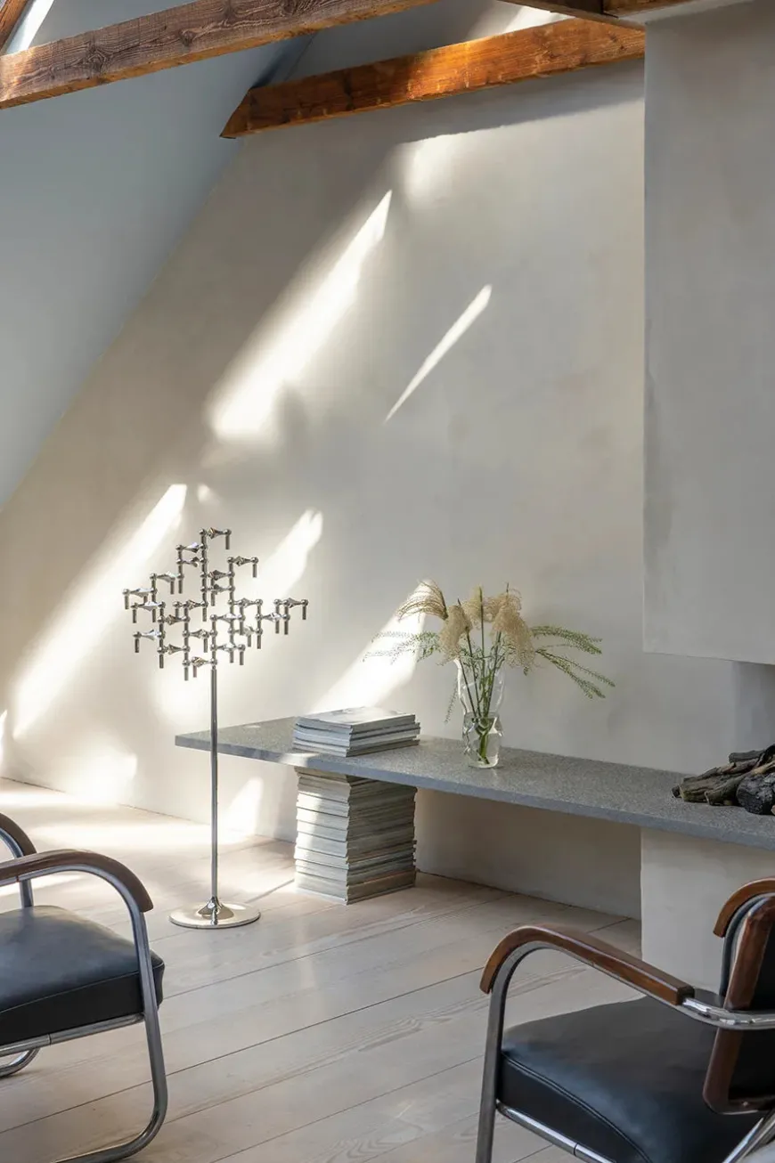 Nu kan du få endnu mere ud af din samling af de populære og smukke lysestager fra STOFF Nagel. Brug dine lysestager i gulvstanderen og skab en flot skulptur med levende lys. Du kan selv bestemme og justere hvor mange lys, du ønsker.