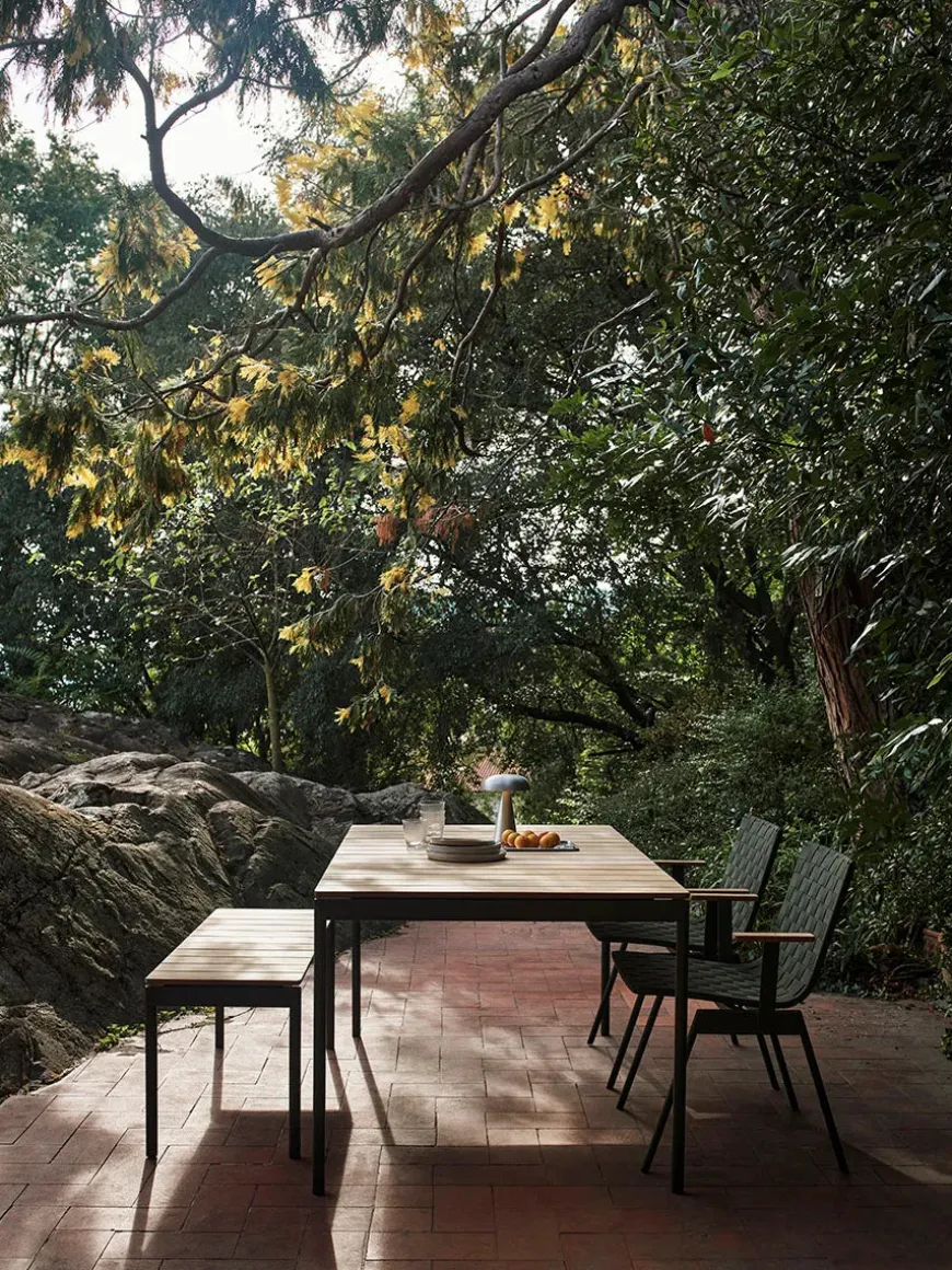 Smukt og praktisk havebord designet af den danske designduo Andersen & Voll. Ville bordet kommer med bordplade i massivt teaktræ, der som bekendt er ideelt at bruge som udendørs træ. Teaktræet kan behandles med olie, men klarer sig også fint uden behandling, og vil med tiden opnå et sølvgråt udseende. Ville bordet har stel i enten sort eller grønt pulverlakeret stål. Bordet måler 219,5 cm i længden og er ideelt til de større terrasseområder, hvor der er plads til flere mennesker.