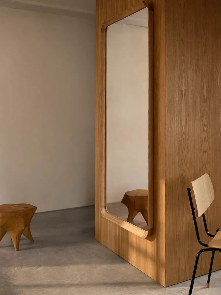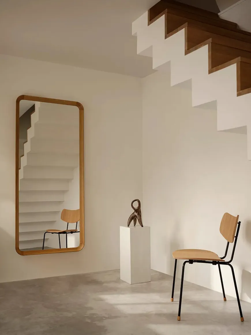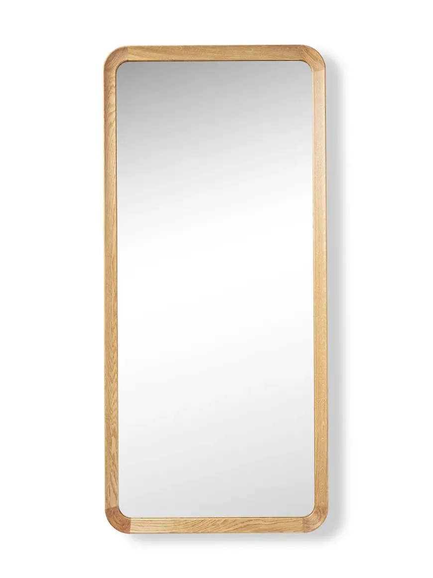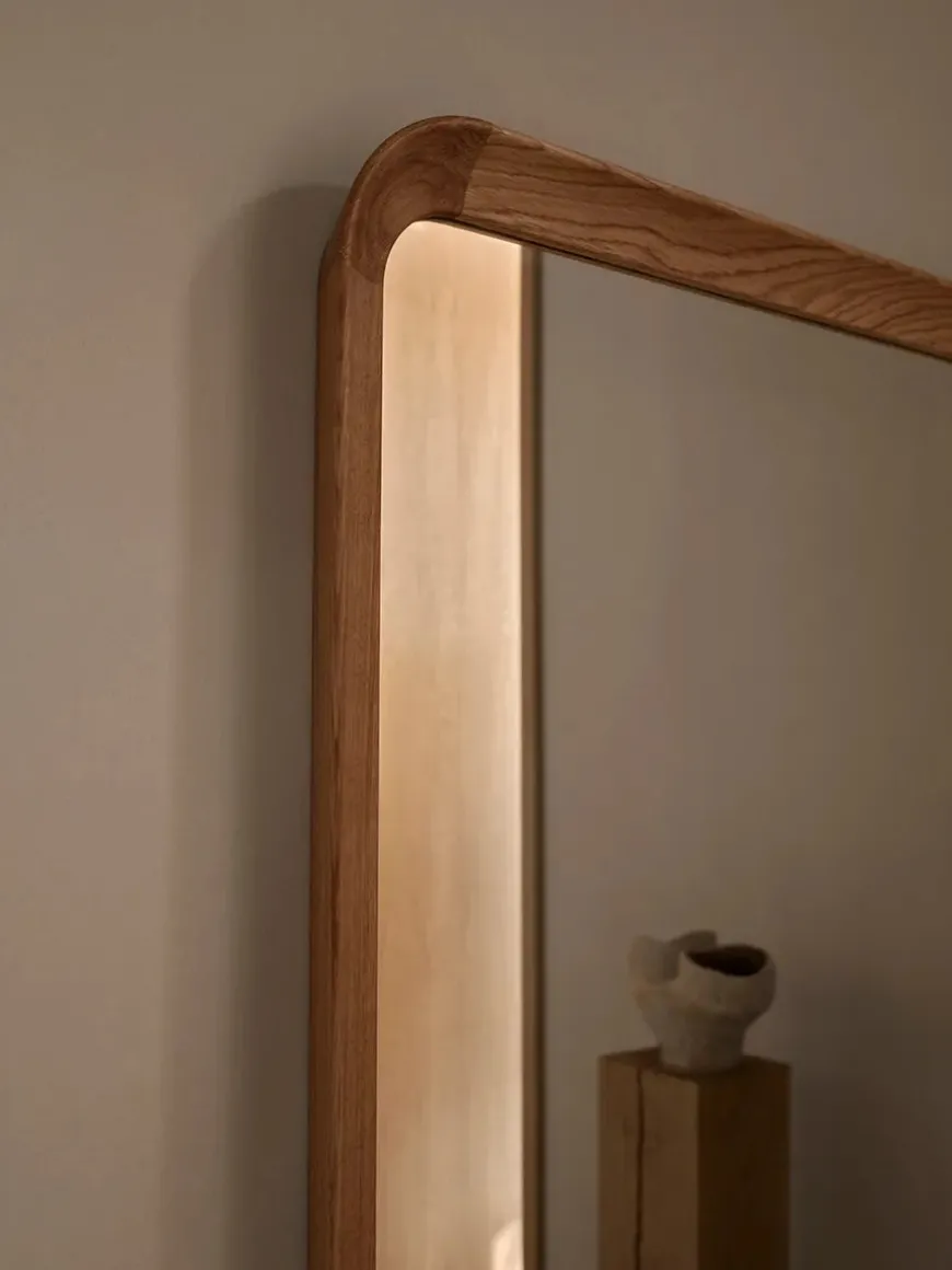 VLA62 Radiohusspejlet har med sin ramme i massivt egetræ, et rent og nordisk udseende. Det store spejl passer perfekt ind i en entré eller i soveværelset. Det store spejl tilfører varme og elegance til rummet.