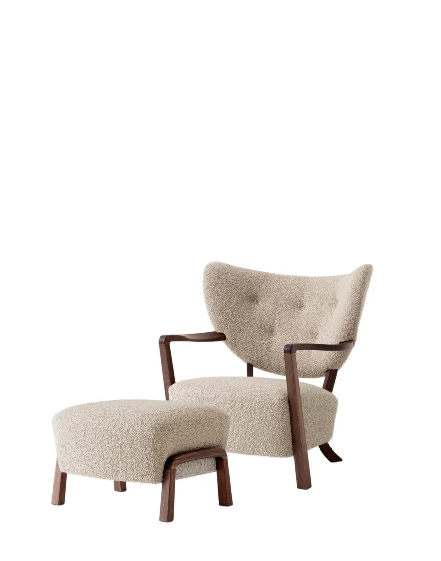 Træd ind i en verden af komfort og ikonisk design med Wulff ATD2-ATD3 Karakorum 003 fra &Tradition, et møbelsæt, der byder på både loungestol og puf, skræddersyet til at skabe din nye favoritplads i hjemmet. Det elegante, skulpturelle design med vingeryg og karakterfulde armlæn giver rummet personlighed, mens den frodige polstring i Karakorum 003-stof indbyder til afslapning. Uanset om det er fordybelse med en bog, samtaler over en kop kaffe eller stille øjeblikke alene, bringer dette sæt håndværk, form og komfort i perfekt samspil.