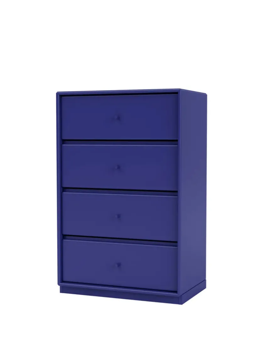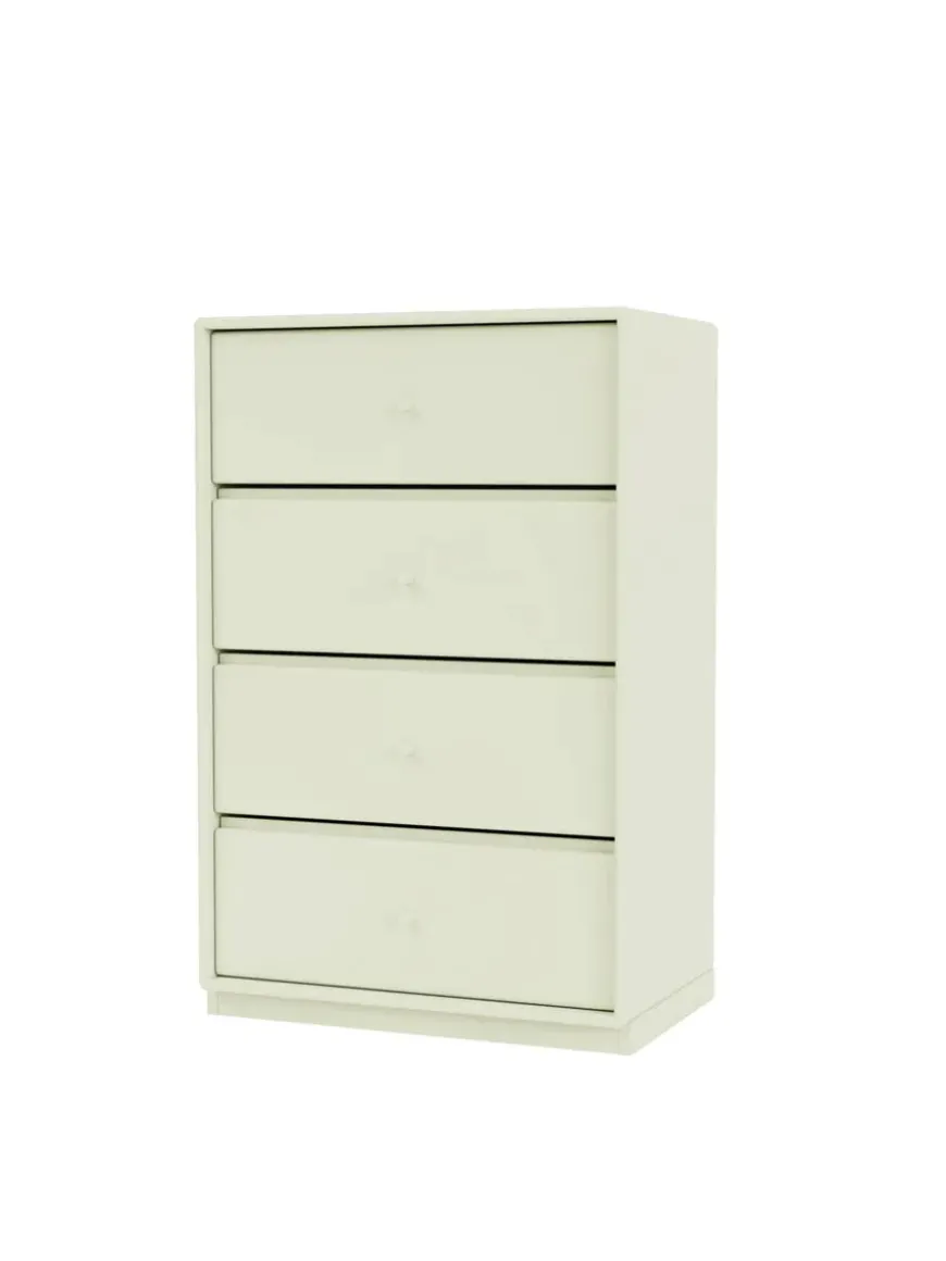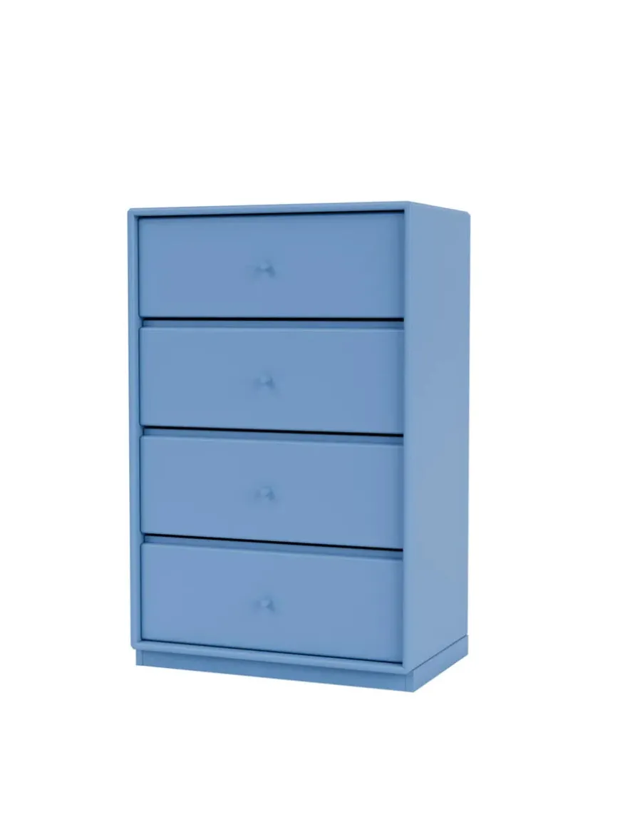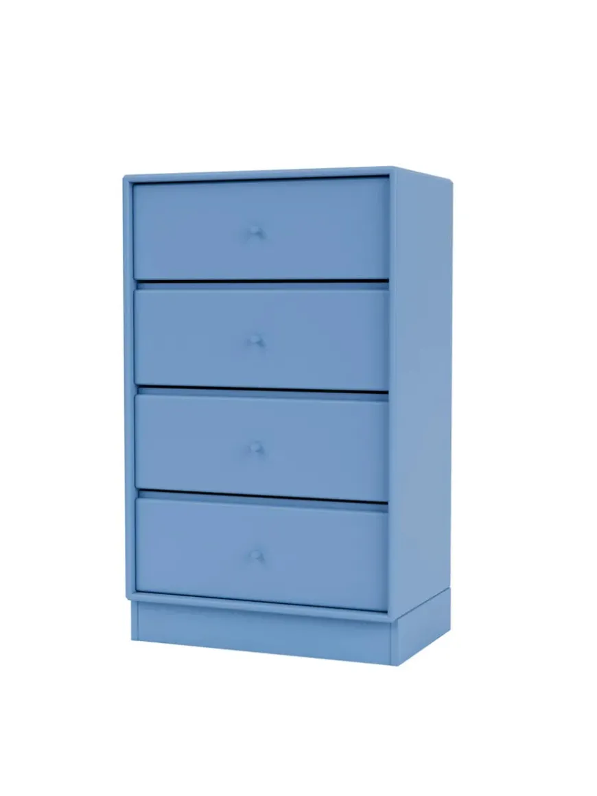 Montana modul med skuffer, model 1143 kan vælges i alle Montanas 40 lakfarver. Reolen har 4 skuffer og er designet af Peter J. Lassen. Inkl. aluminiumsgreb – Lakerede greb tilbydes mod et tillæg. Mål: Højde: 69,6 cm (ekskl. sokkel el. ben) Bredde: 46,8 cm Dybde: 30 eller 38 cm.