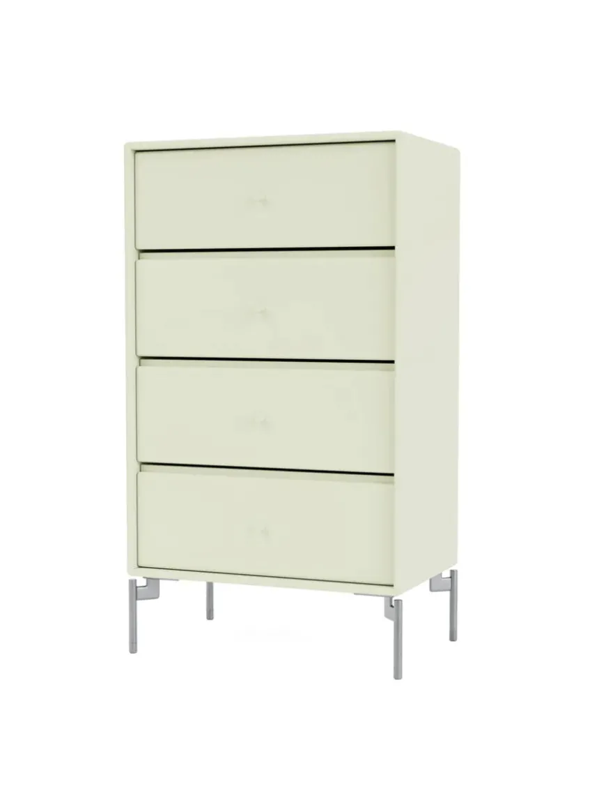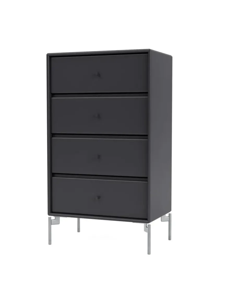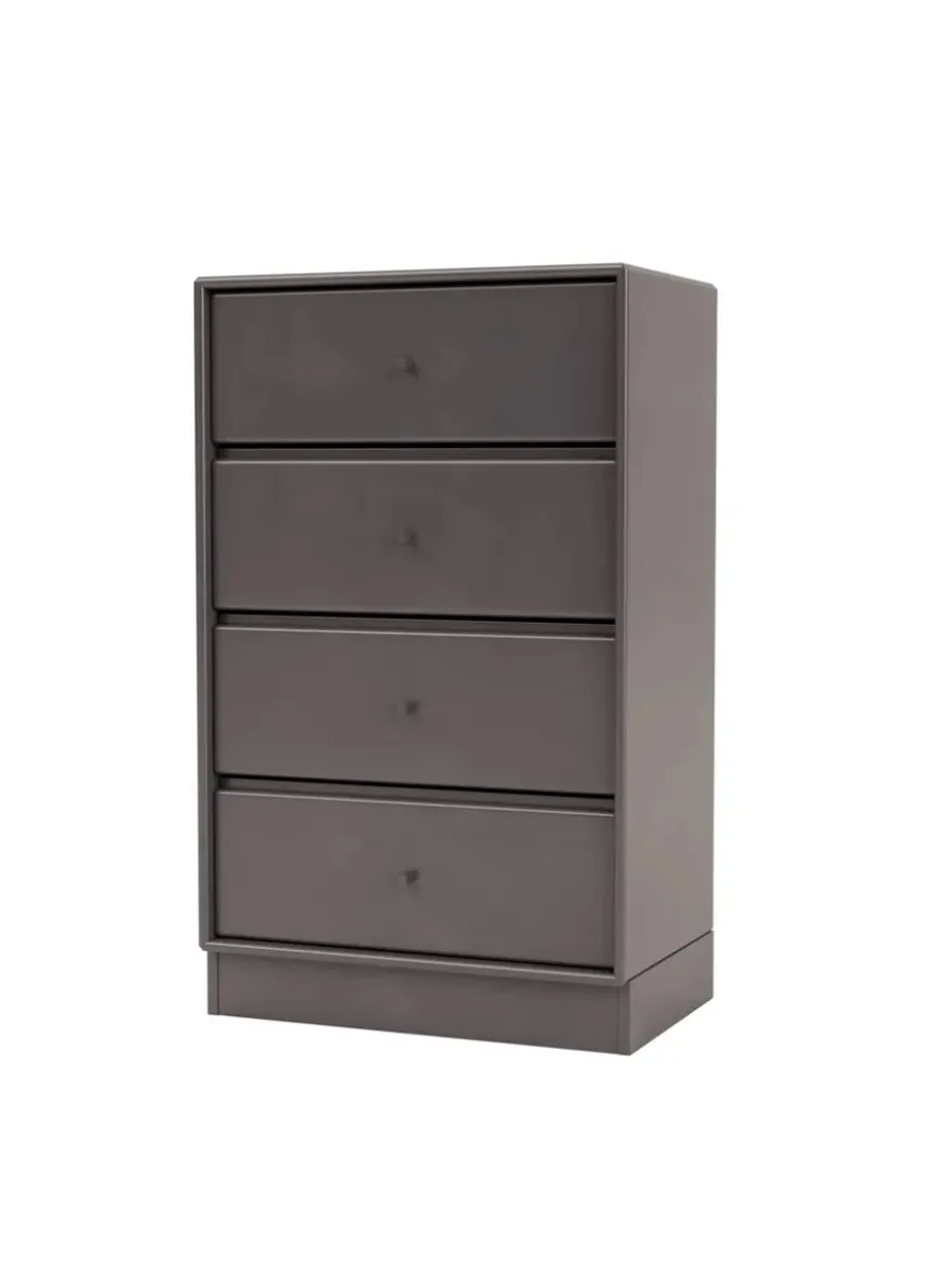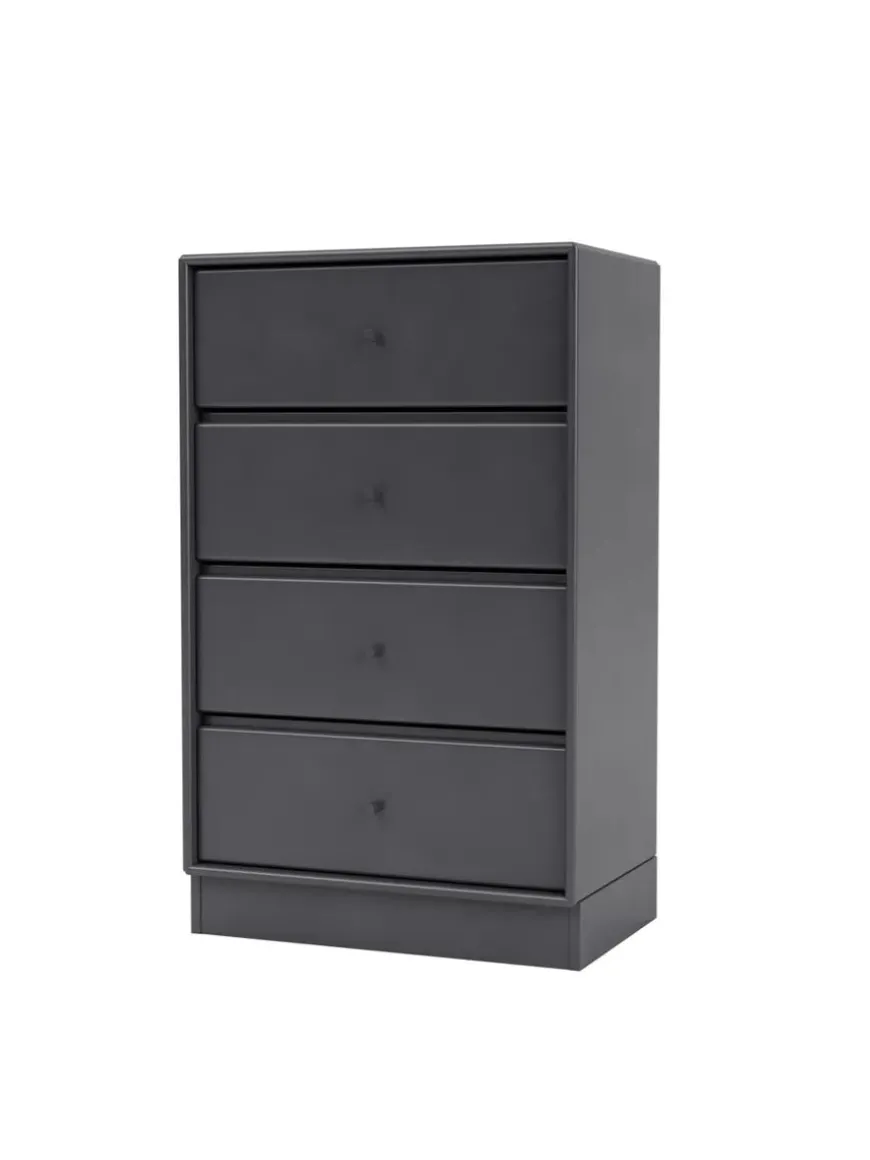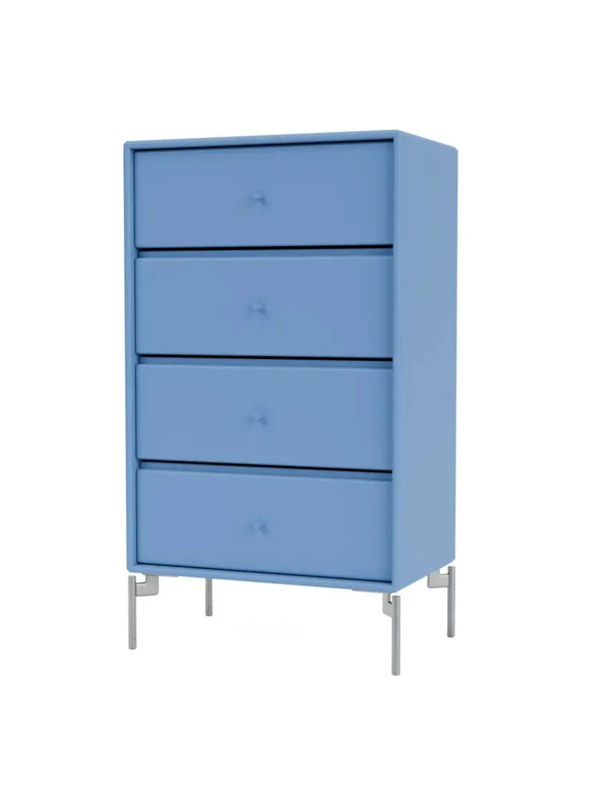 Montana modul med skuffer, model 1143 kan vælges i alle Montanas 40 lakfarver. Reolen har 4 skuffer og er designet af Peter J. Lassen. Inkl. aluminiumsgreb – Lakerede greb tilbydes mod et tillæg. Mål: Højde: 69,6 cm (ekskl. sokkel el. ben) Bredde: 46,8 cm Dybde: 30 eller 38 cm.
