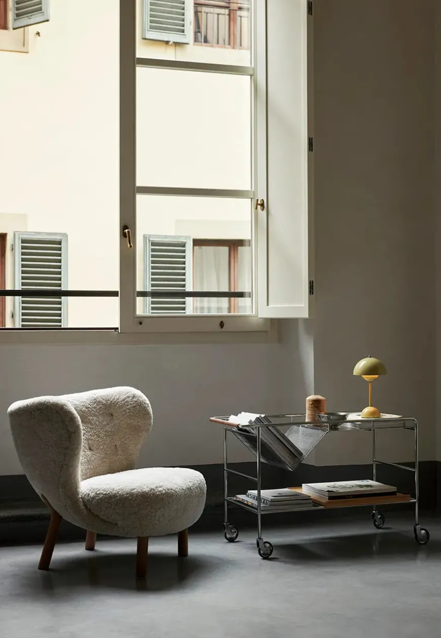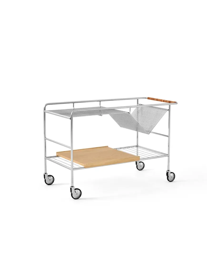 Alima er designet af Note Design Studio med ønsket om at skabe en opbevaringsenhed, der skulle rumme bøger, magasiner og mindre genstande. Den fine vogn kan fungere flere steder i hjemmet, både som barvogn eller til opbevaring af dine ynglings ting.