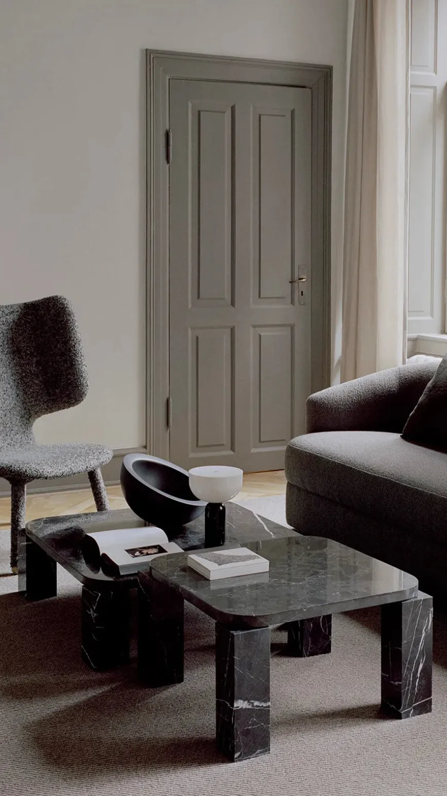 Atlas Sofabord 820×820, Unfilled Travertine fra New Works