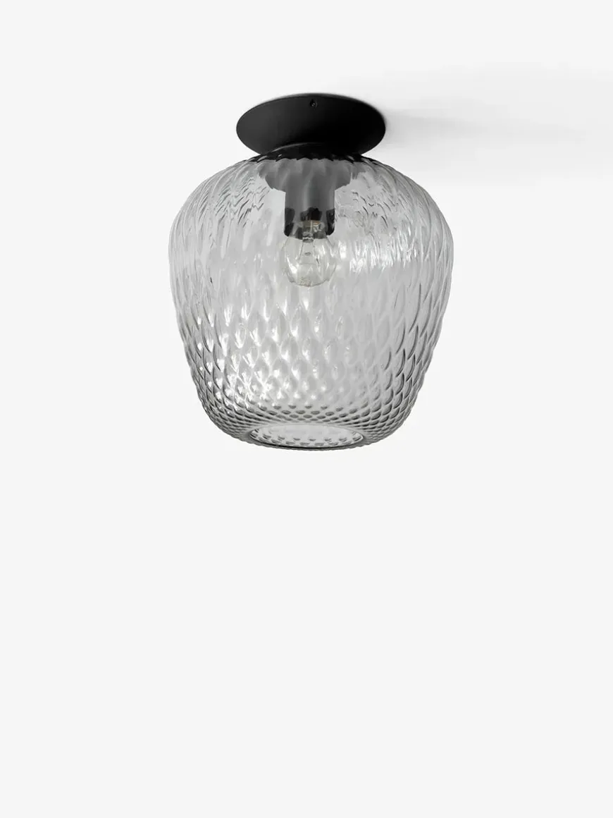 Blown loftlampe fra &Tradition. Lampen laves i to udgaver i mundblæst sølvfarvet glas. Designet af: Samuel Wilkinson i 2018. Mål: Højde: 34 cm Bredde: 28 cm Længde: 28 cm Materiale: Mundblæst glas med fatning i metal.