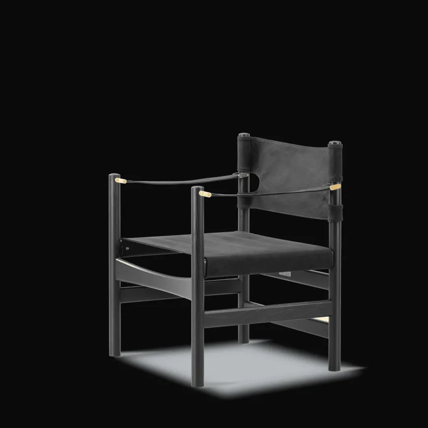 Canvas 21 stolen er en af Børge Mogensens ikoniske loungestole – en enkel, ærlig konstruktion i massivt træ med canvas og fine messingdetaljer. Stellet er udført i røget eg, olieret (FSC Mix 70%), kombineret med sort canvas i sæde og ryg. Den rene, grafiske silhuet og den åbne, komfortable siddeoplevelse gør Canvas 21 stolen til en alsidig klassiker, der harmonerer med både moderne og klassiske indretninger