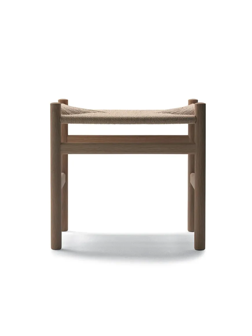 CH53 skamlen fra Carl Hansen & Søn. Hans J. Wegner tegnede denne smukke skammel i 1966 til CH44 stolen. Skamlens enkle og elegante form med stel i massivt træ og sæde i sort eller naturfarvet håndflettet papirgarn passer perfekt til CH44 loungestolen, men er også oplagt alene til entréen eller soveværelset.