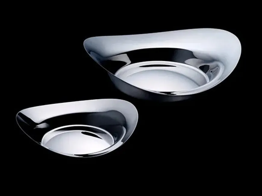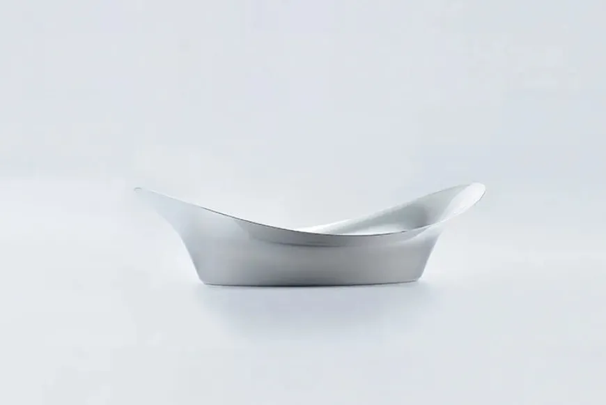 Ensartetheden skaber iøjnefaldende refleksioner af alt, hvad der placeres i skålen.