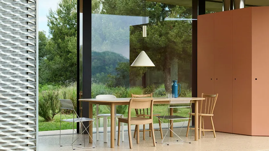 Denne variant er højdejusterbar, hvilket gør det nemt at tilpasse lyset til forskellige behov – fra fokuseret arbejdslys til hyggelige middage. Compass er en alsidig lampe, der egner sig perfekt til køkken, stue, spisestue og kontor.