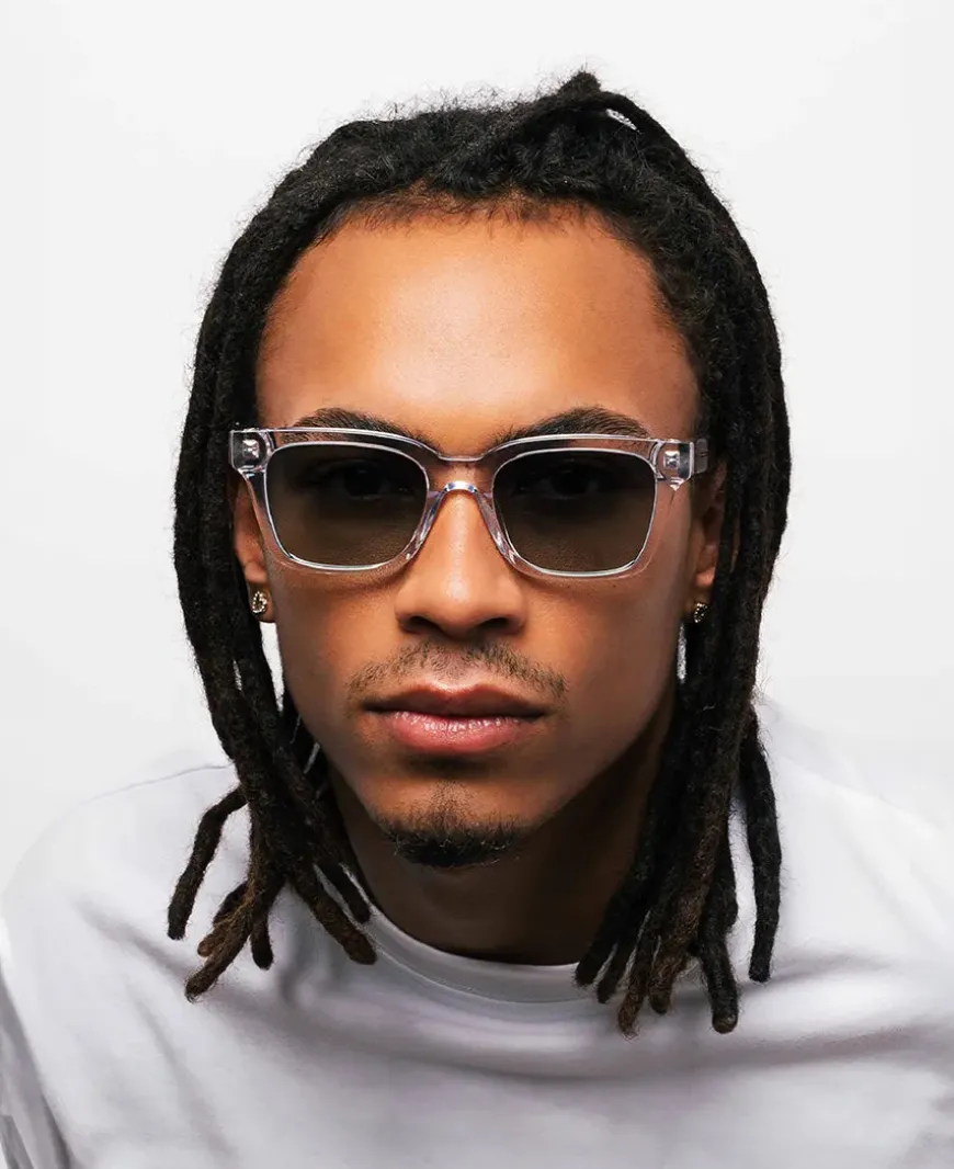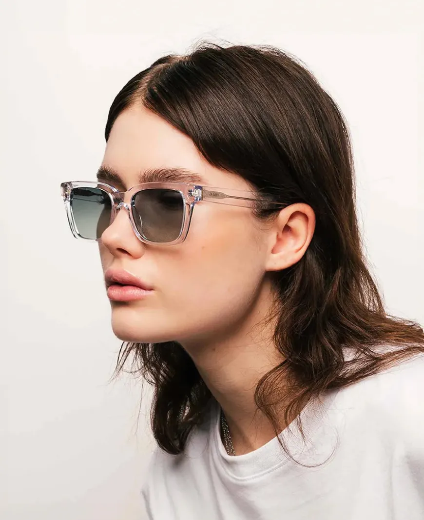 Seje solbriller fra MessyWeekend. DEAN solbrillen er en klassisk solbrille. Her med stel i green crystal, der bløder solbrillen op og giver et friskt look.