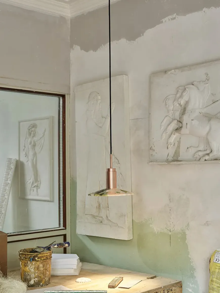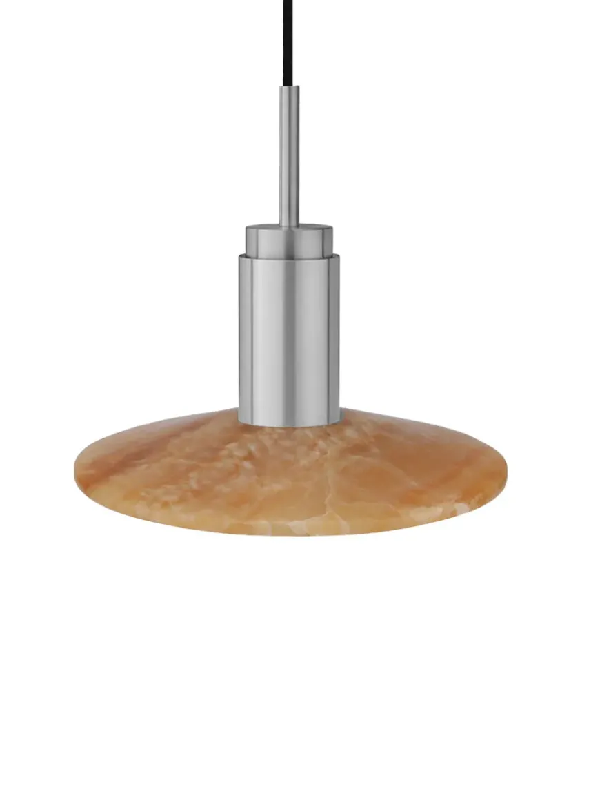 Nu fås Donya lampen fra Anour med skønne skærme i sten. Lampeskærmen her er i mixet Onyx, hvor der både er rødt/orange, hvidt og grønt. Onyx er en natursten, som er fyldt med harmoni og i skønne farver. Den mixede skærm kommer med, hvad der ligner revner, som giver et skønt og diffust lys. Donya lampen er ideel at bruge over køkkenbordet eller til at sætte sammen flere og så hænge over spisebordet. Da skærmen er i natursten, vil hver eneste Donya ONYX Solar lampe være unik og helt sin egen. Donya lampefatningen kommer i mange forskellige finishes og materialer.